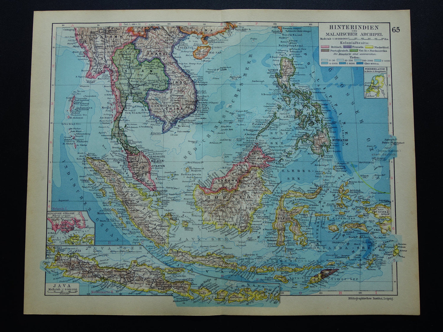 CHINA KOREA JAPAN oude gedetailleerde kaart uit 1877 originele antieke landkaart vintage poster Tokio Guangzhou Shanghai Taiwan