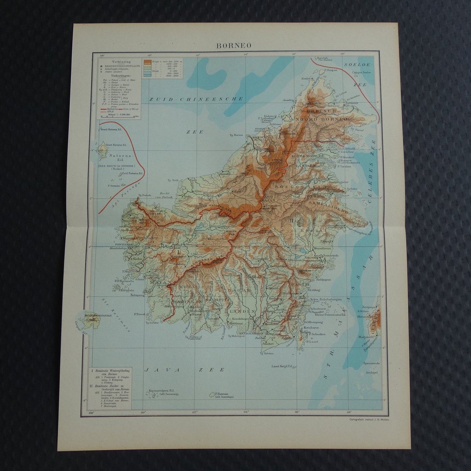 AZIË oude kaart Set van 2 originele vintage landkaarten 1926 Politieke en Fysieke kaart continent