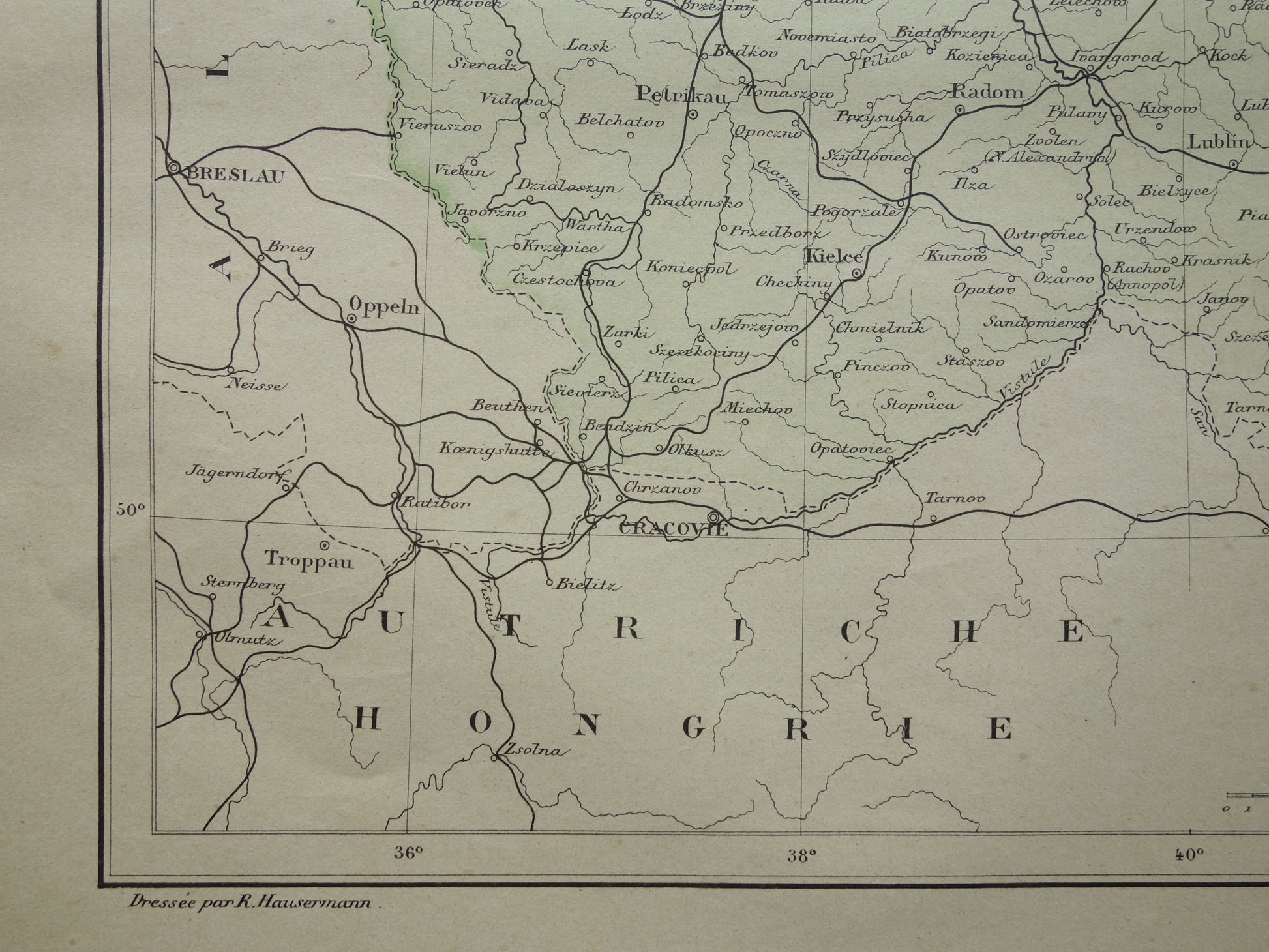 Zum Verkauf steht eine alte Karte von Polen aus dem Jahr 1896. Auffällig ist, dass diese französische Karte von Hand koloriert wurde (was Ende des 19. Jahrhunderts selten vorkam).