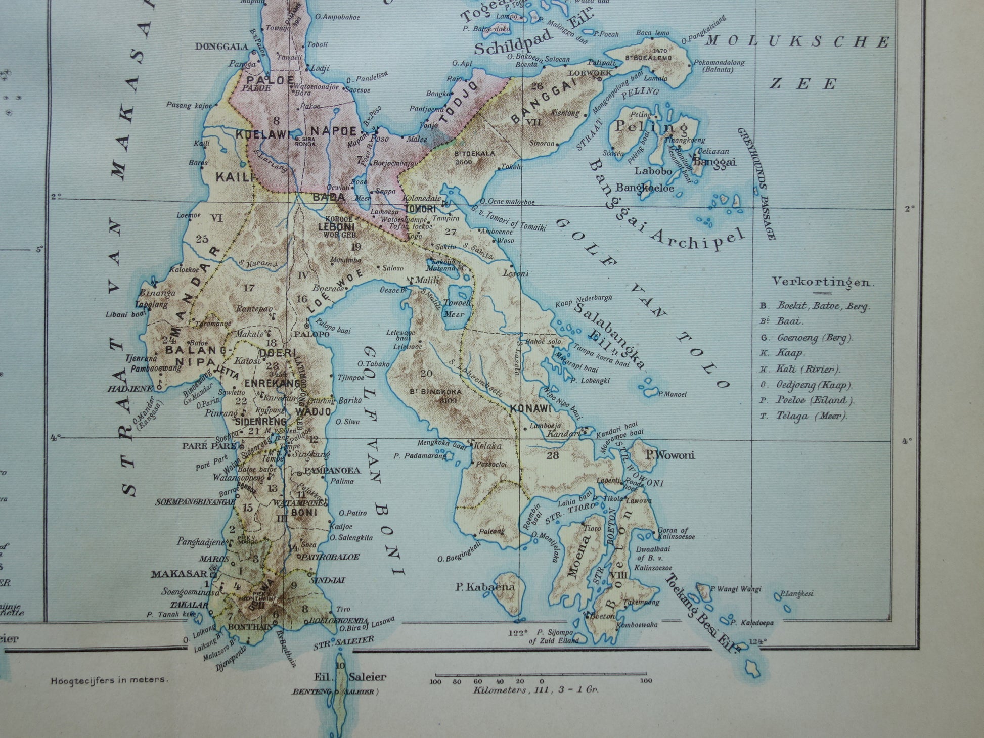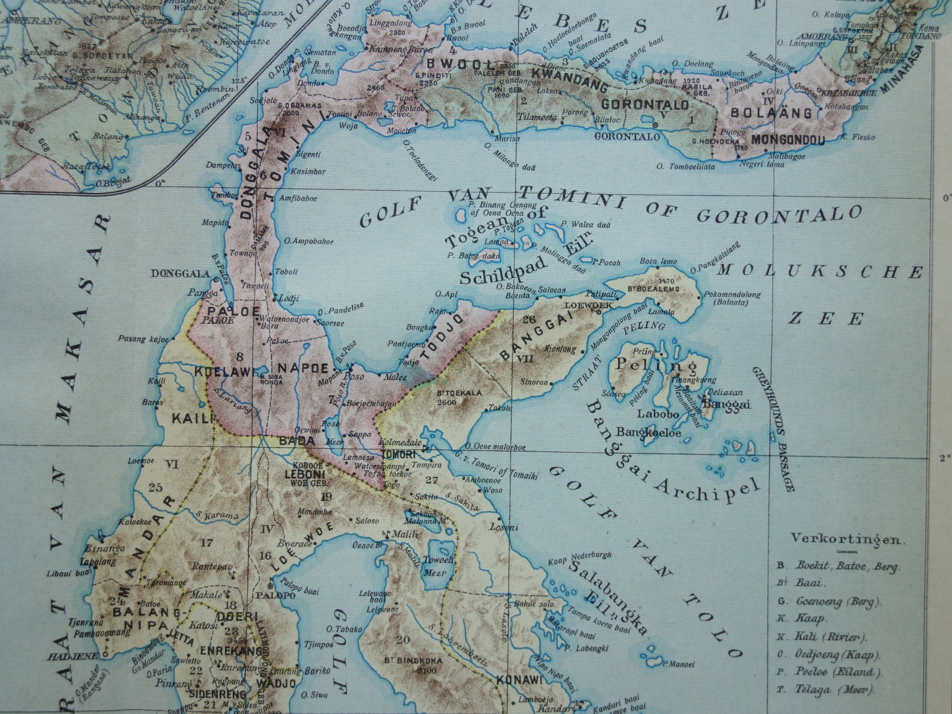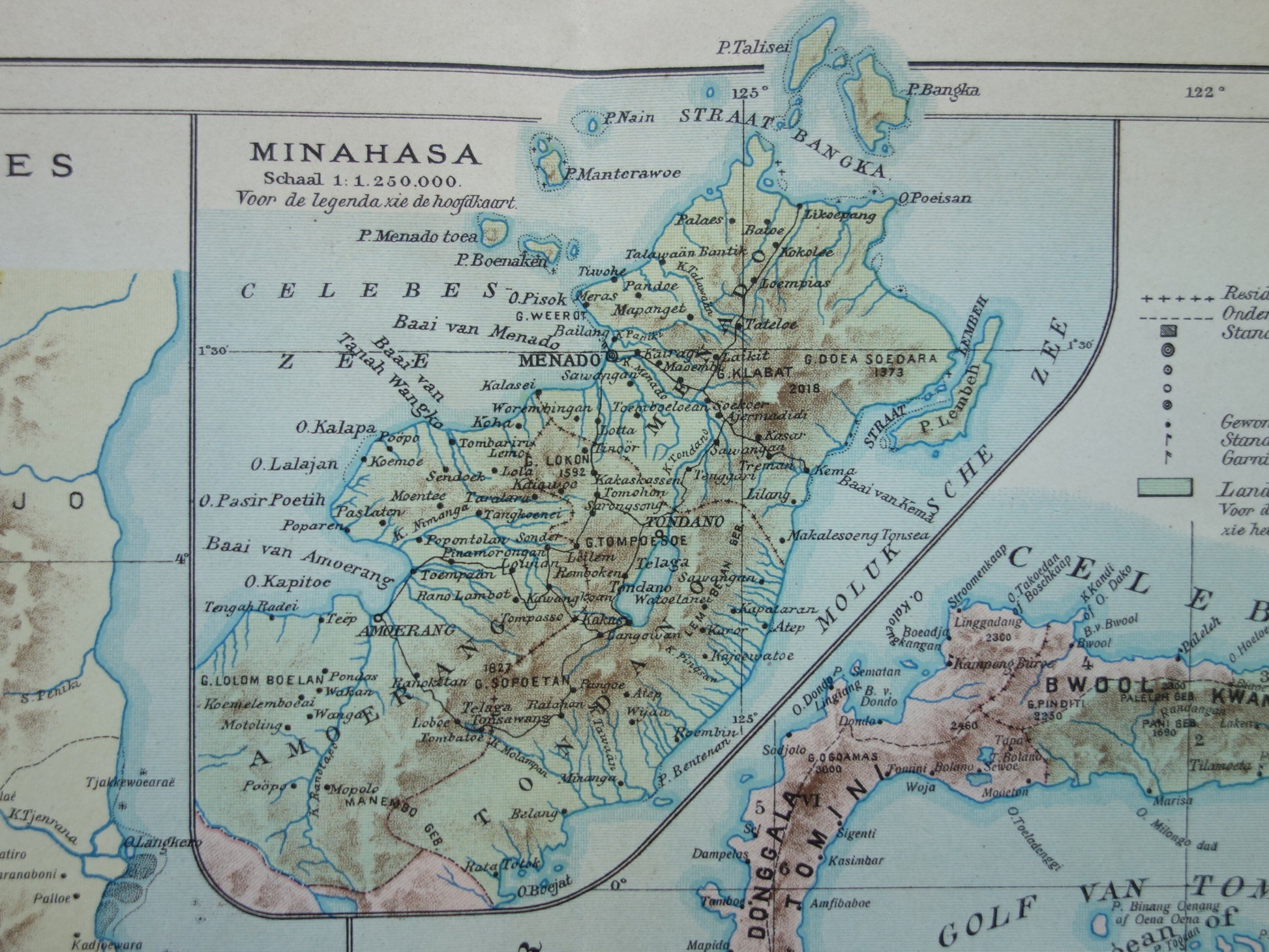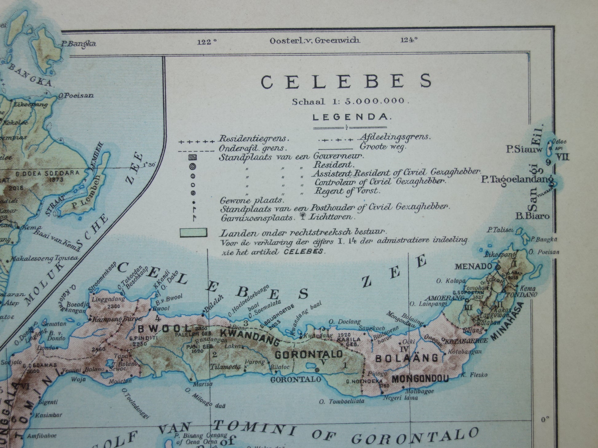 Sulawesi oude kaart van Celebes Indonesië 1915 originele antieke Nederlandse landkaart historische kaarten Minahassa Makassar