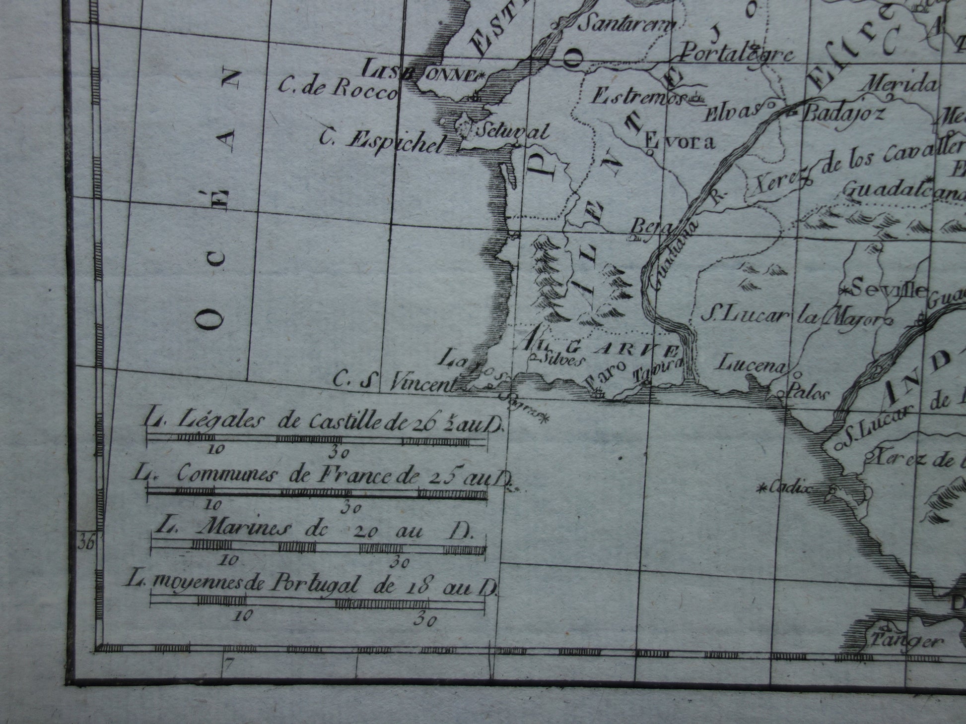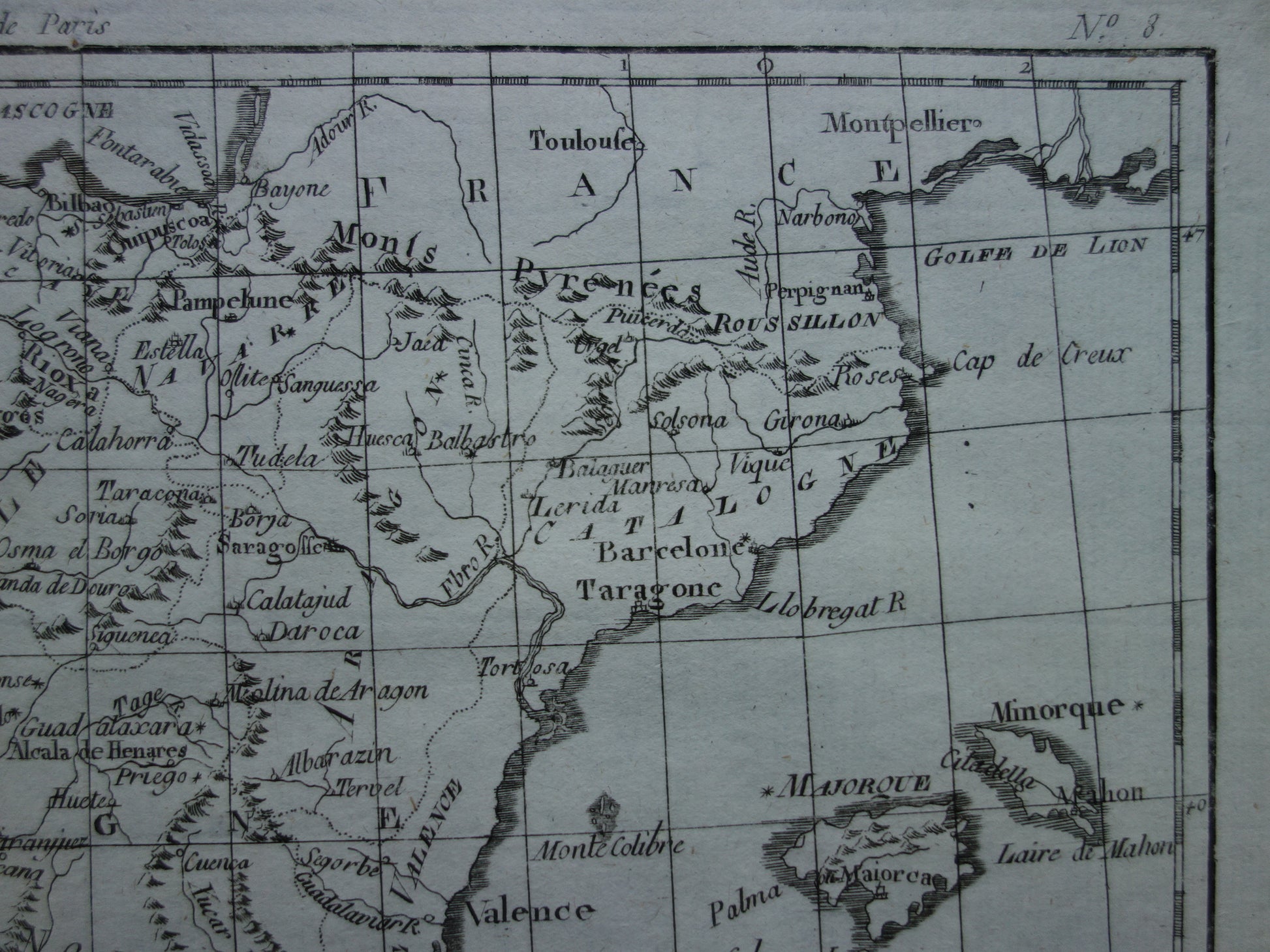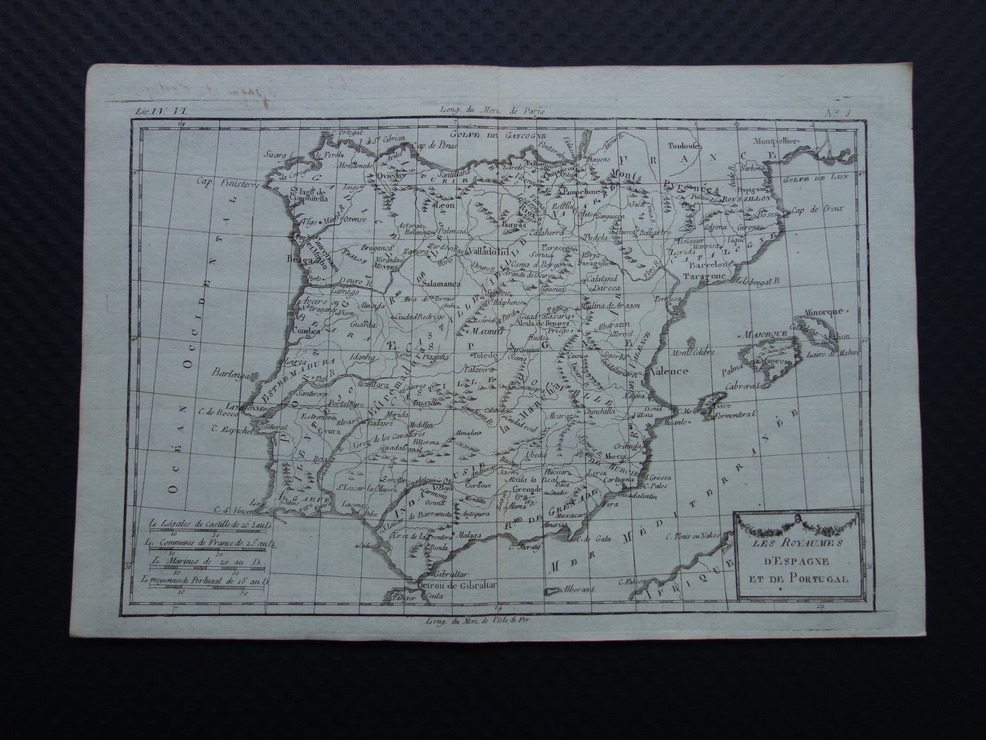 1780 Oude kaart van Spanje en Portugal Originele Antieke landkaart - Raynal Bonne Les Royaumes d'Espagne et de Portugal