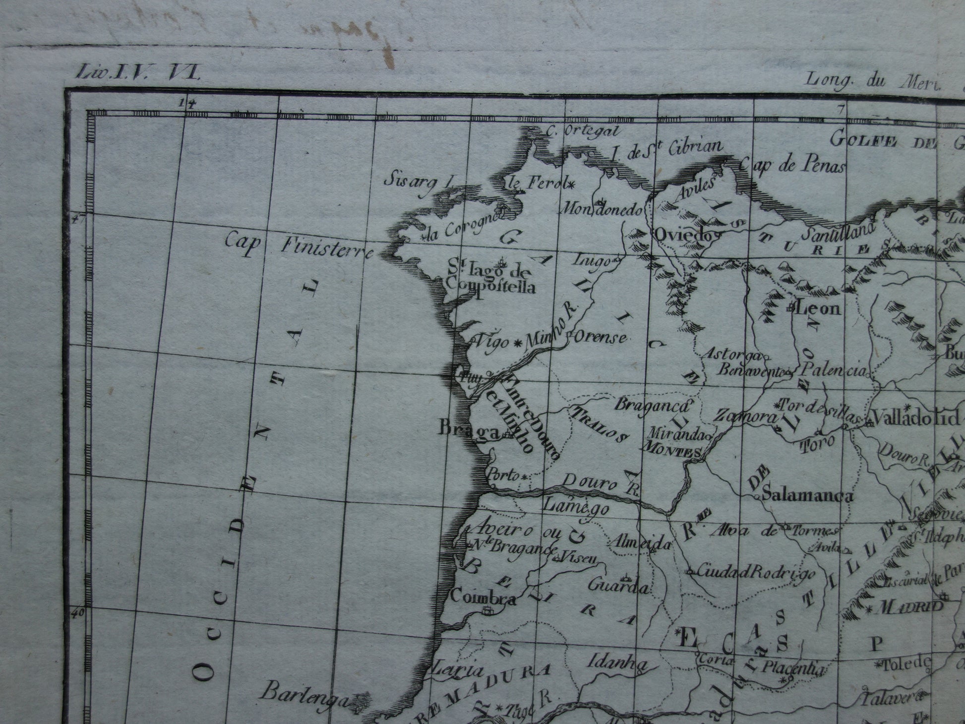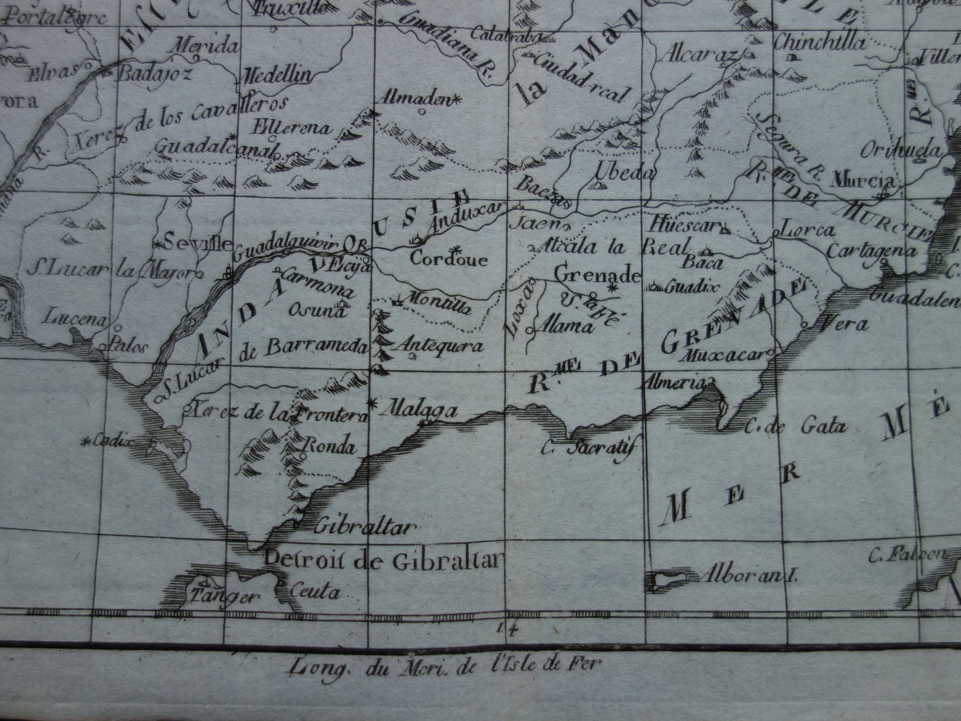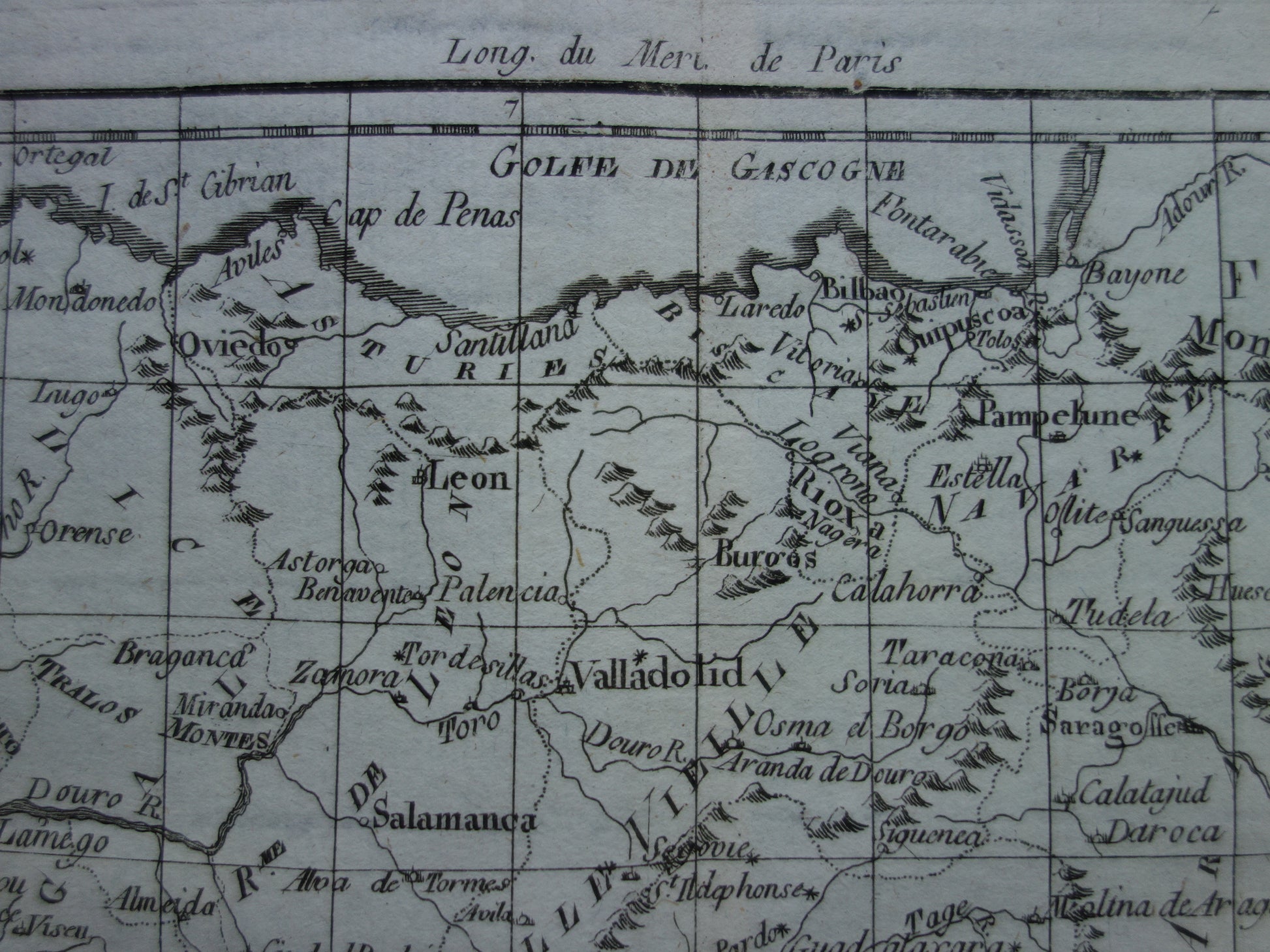 1780 Oude kaart van Spanje en Portugal Originele Antieke landkaart - Raynal Bonne Les Royaumes d'Espagne et de Portugal