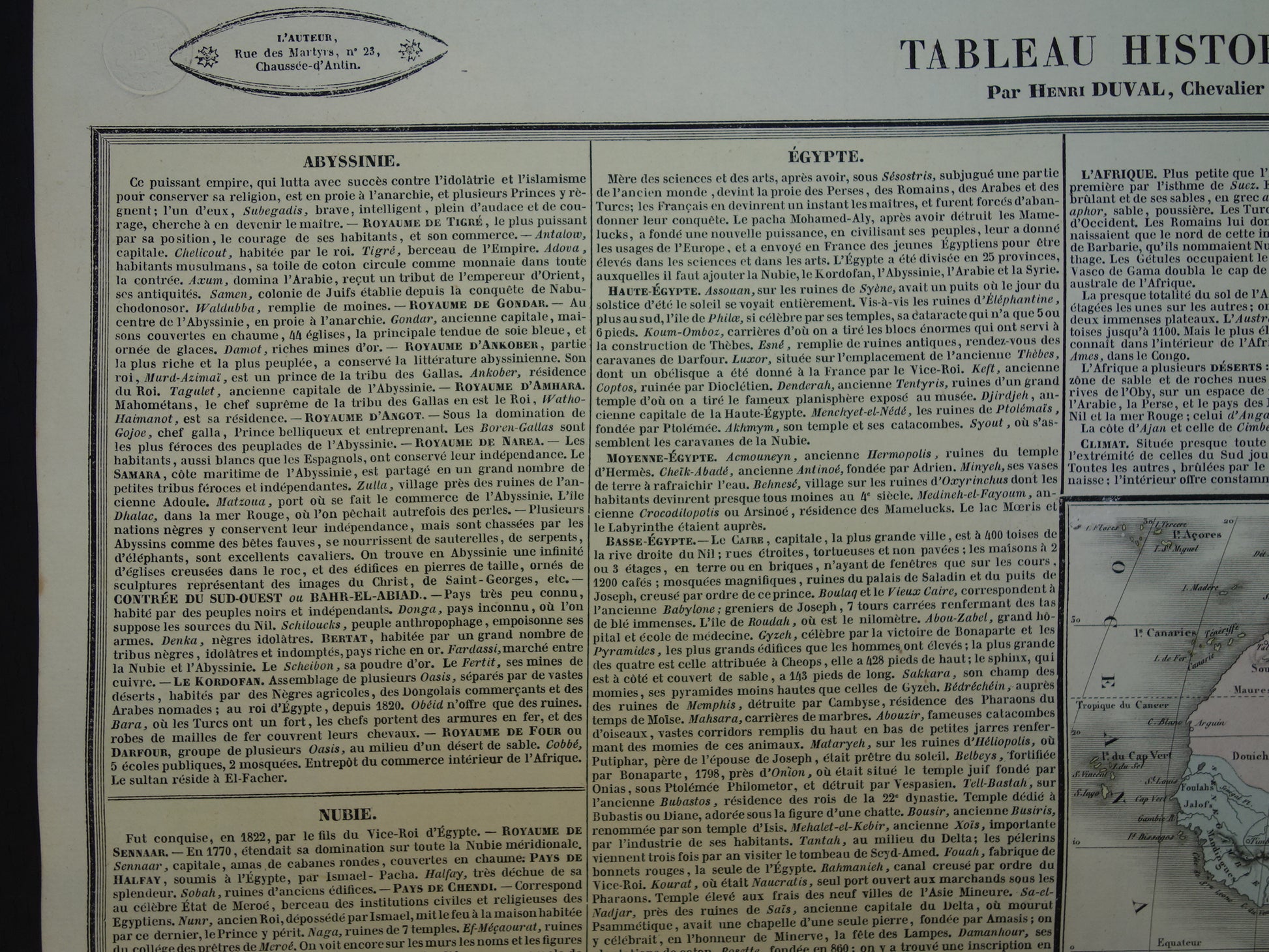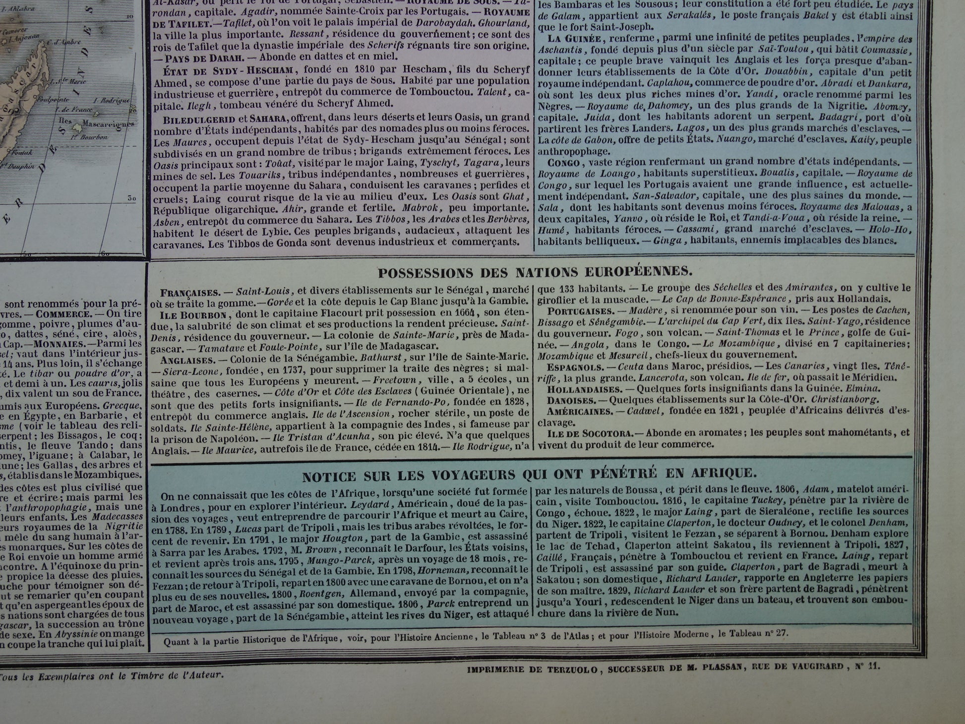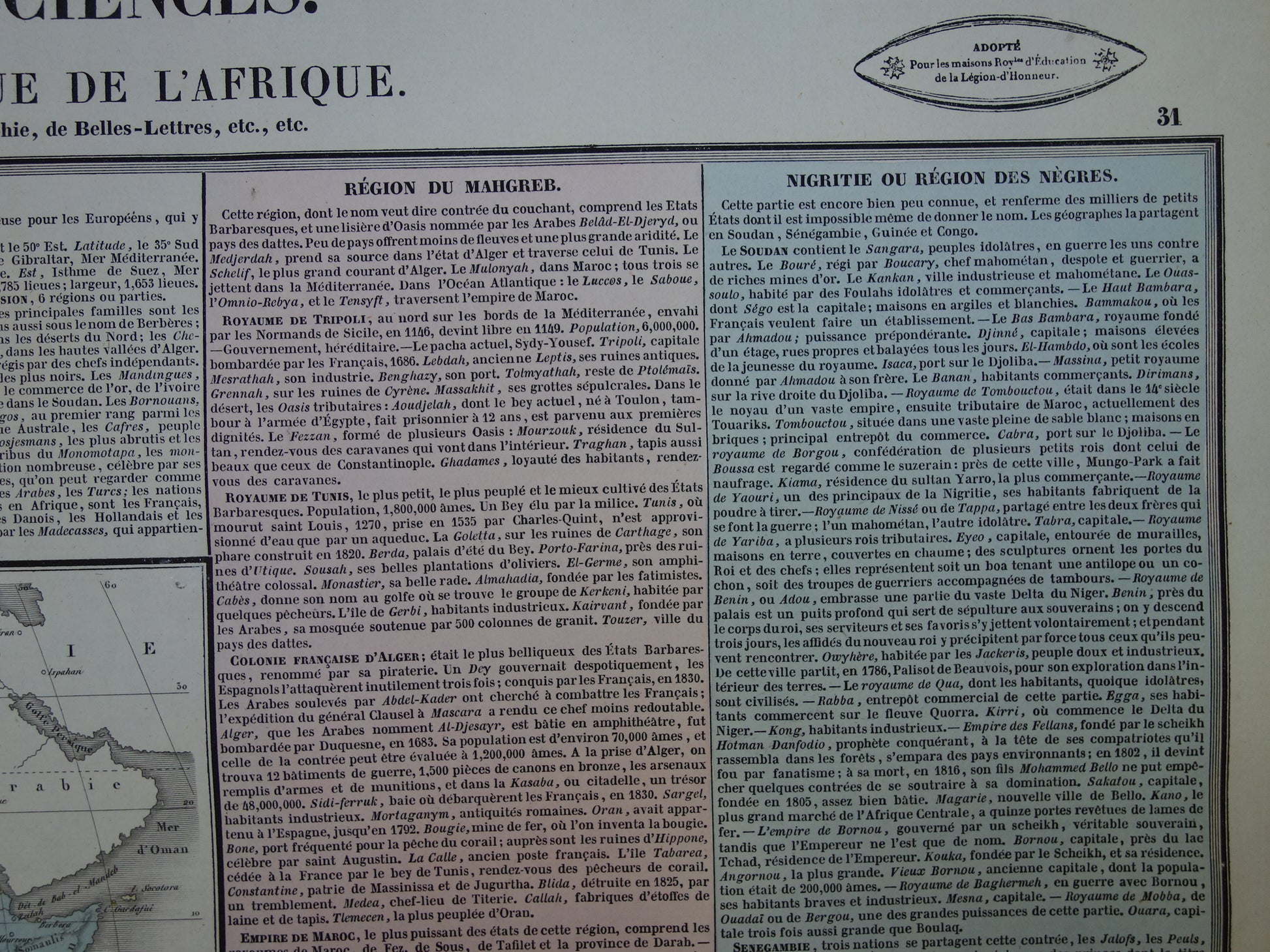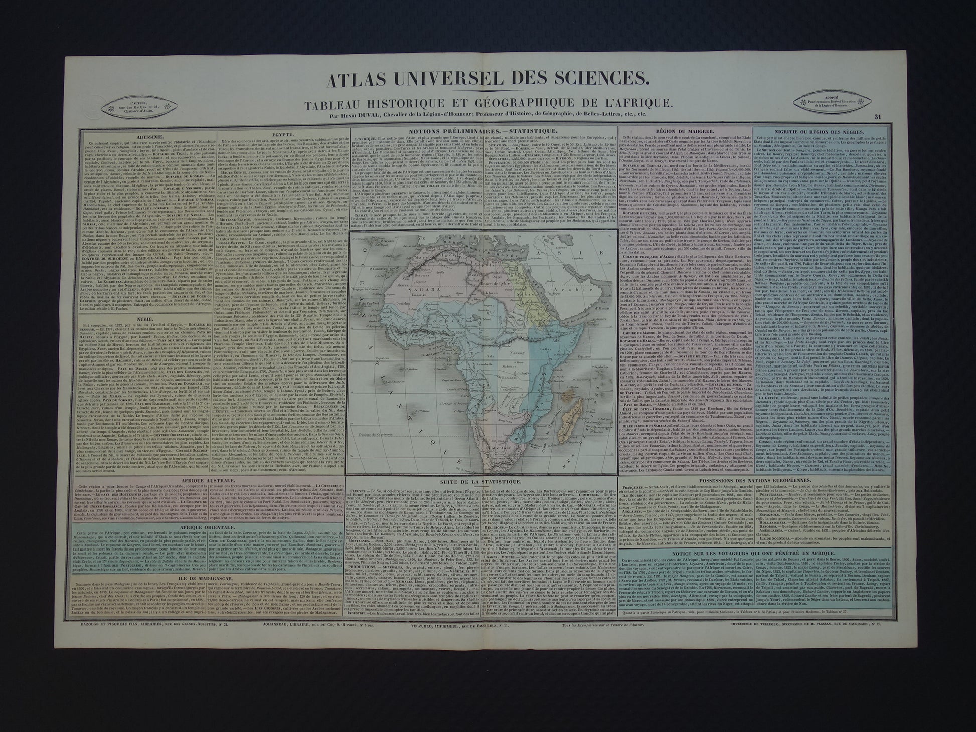 Te koop is een mooie Franse kaart van Afrika uit het jaar 1837. Rondom de kaart veel tekst (in het Frans) over het continent. De kaart is met de hand ingekleurd.