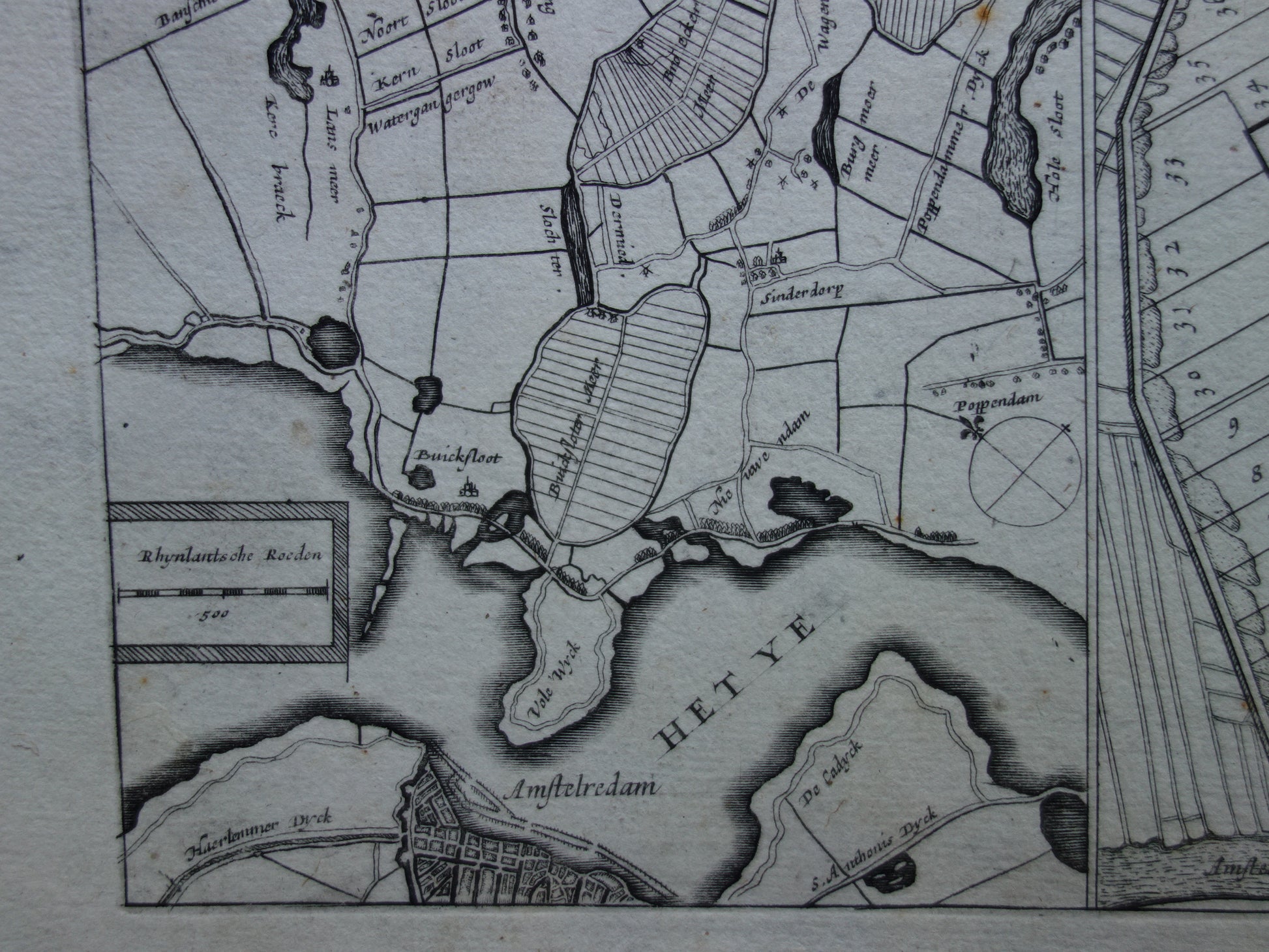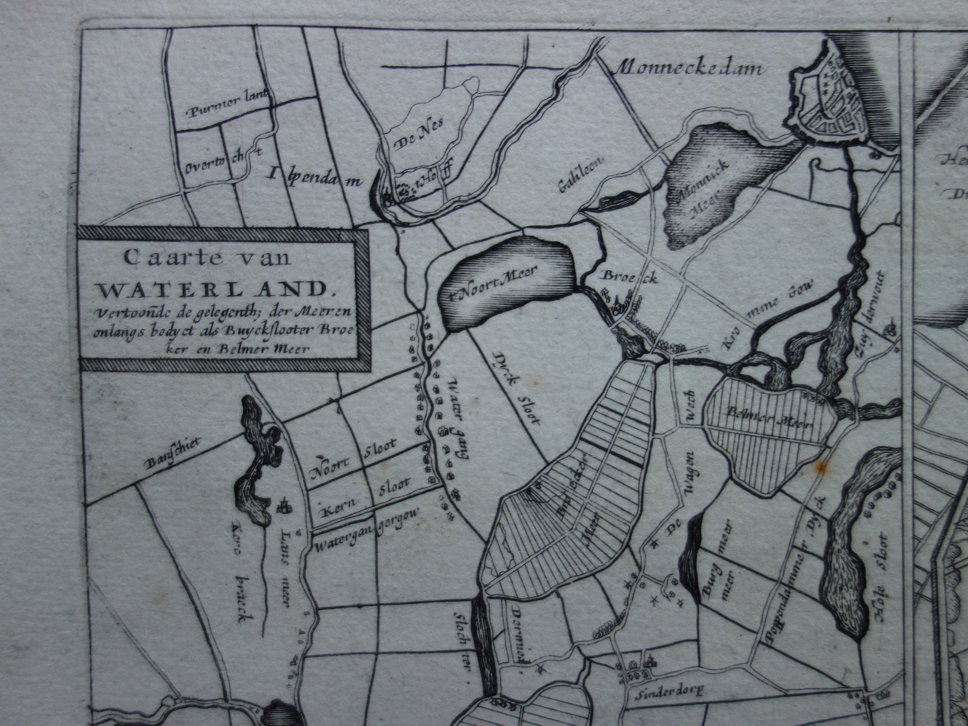 Te koop is een antieke kaart van Waterland (met het huidige Amsterdam-Noord tot aan Monnikendam dat bovenaan de kaart staat) alsook van de Watergraafsmeer (het huidige Amsterdam-Oost). Op de 2e kaart staan geen plaatsaanduidingen op het land, maar de Middenweg is goed te herkennen (de enige weg die van links naar rechts loopt).