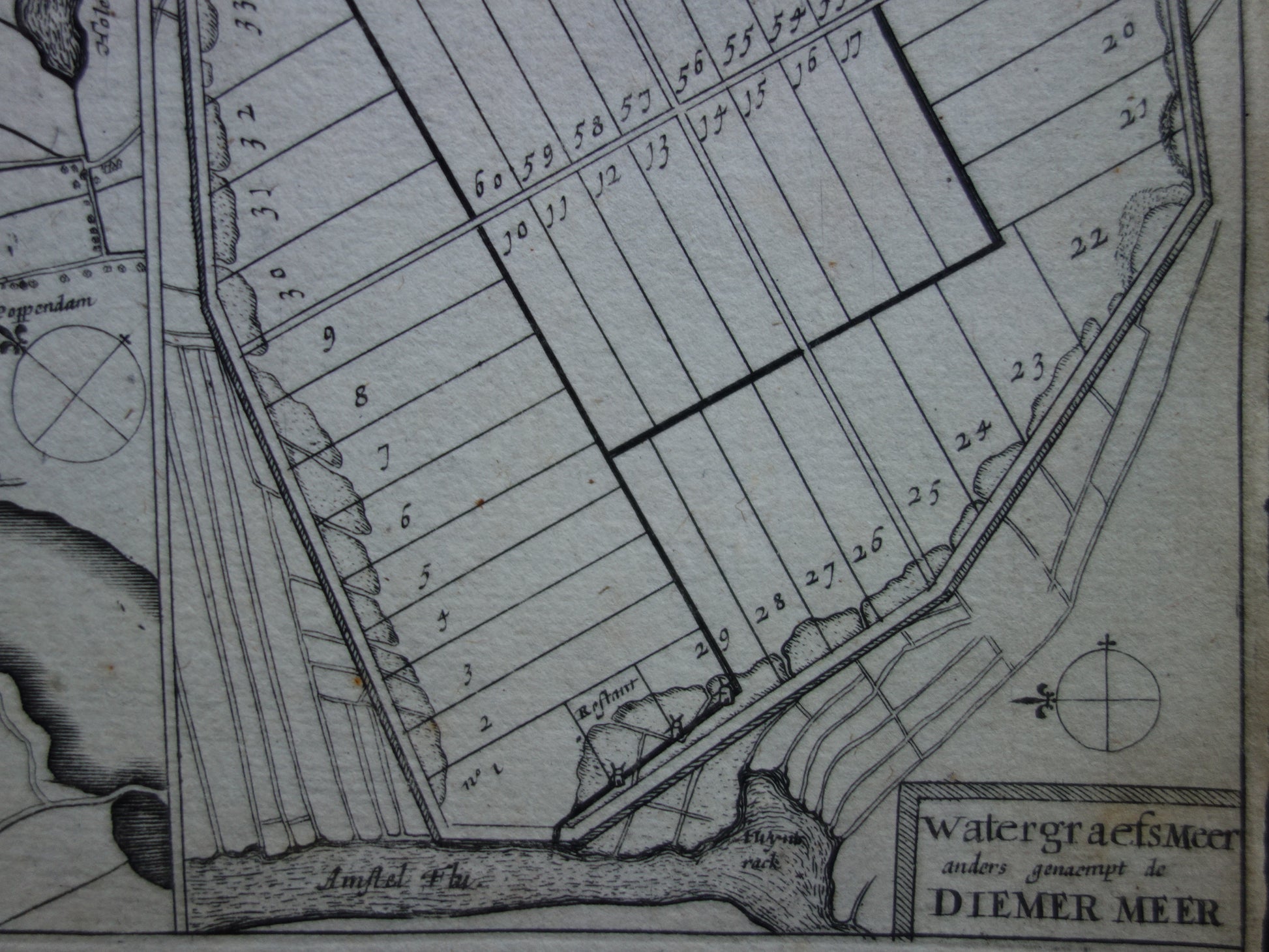 AMSTERDAM oude kaart van Amsterdam-Noord en Amsterdam-Oost uit 1702 originele antieke landkaart Waterland Watergraafsmeer Diemermeer