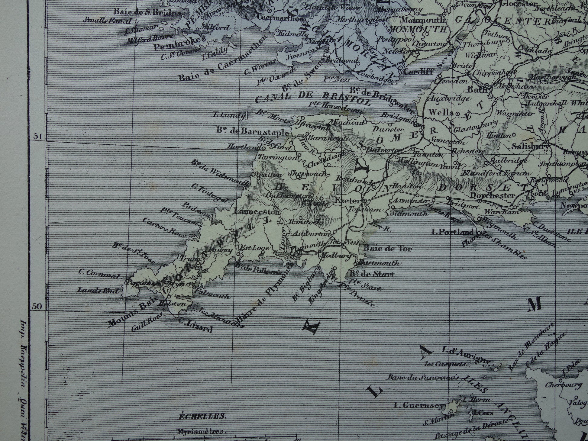Antieke Franse landkaart van Engeland en Wales - Handgekleurde oude kaart Engeland