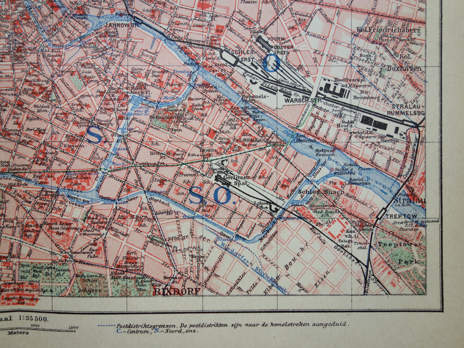 BERLIJN oude kaart van Berlijn uit 1906 originele Nederlandse antieke plattegrond