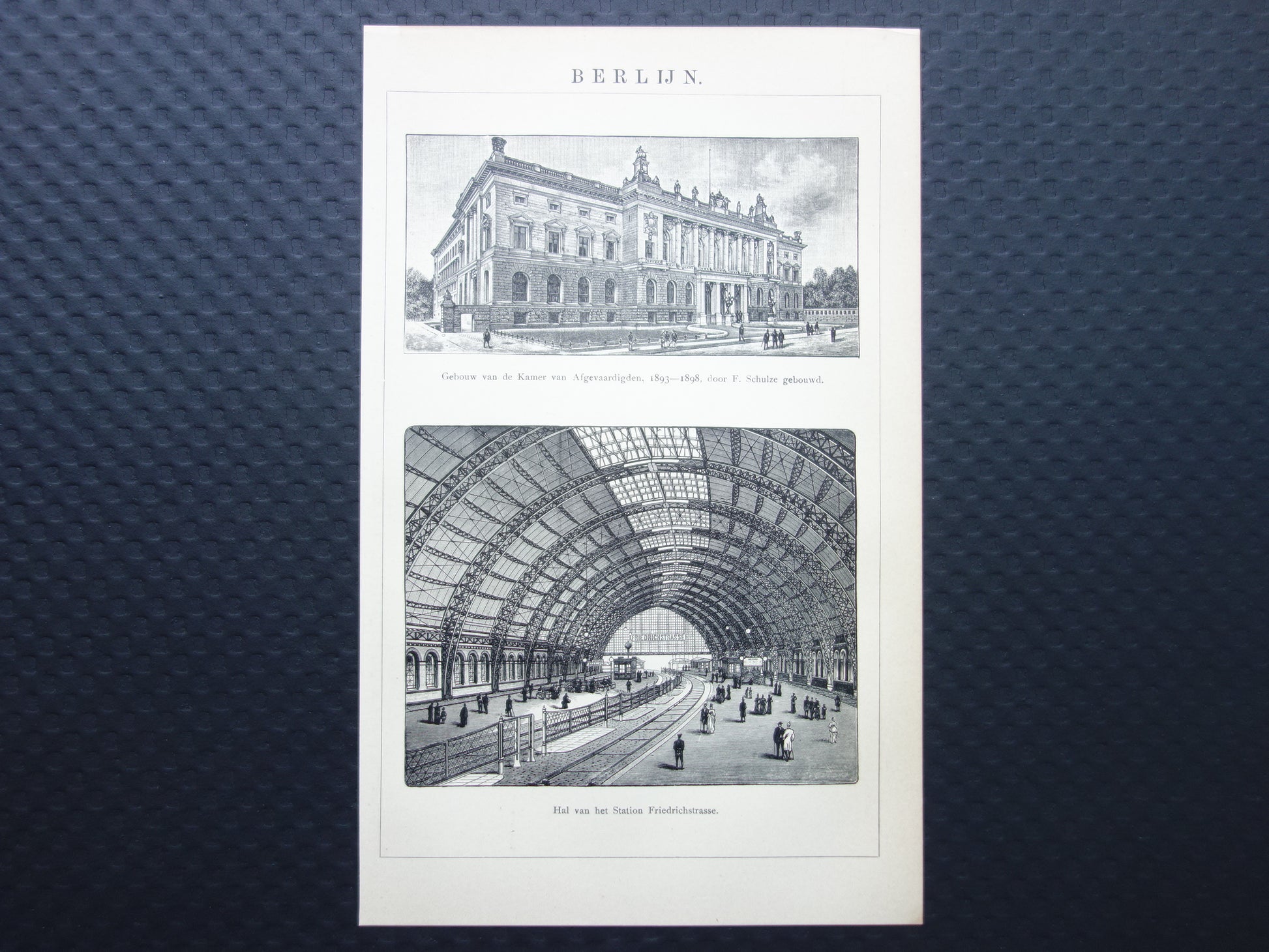 Mooie, zeer gedetailleerde Nederlandse kaart van Berlijn (binnenstad) uit 1906. Met een kleine z/w prent uit hetzelfde jaar.