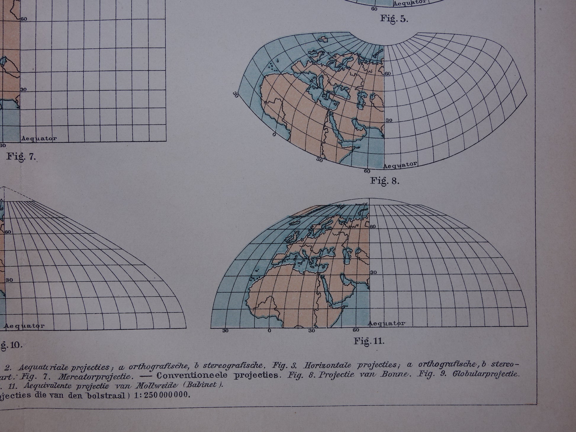 Cartografie oude prent over kaartprojecties Kartografie Aardrijkskunde antieke print