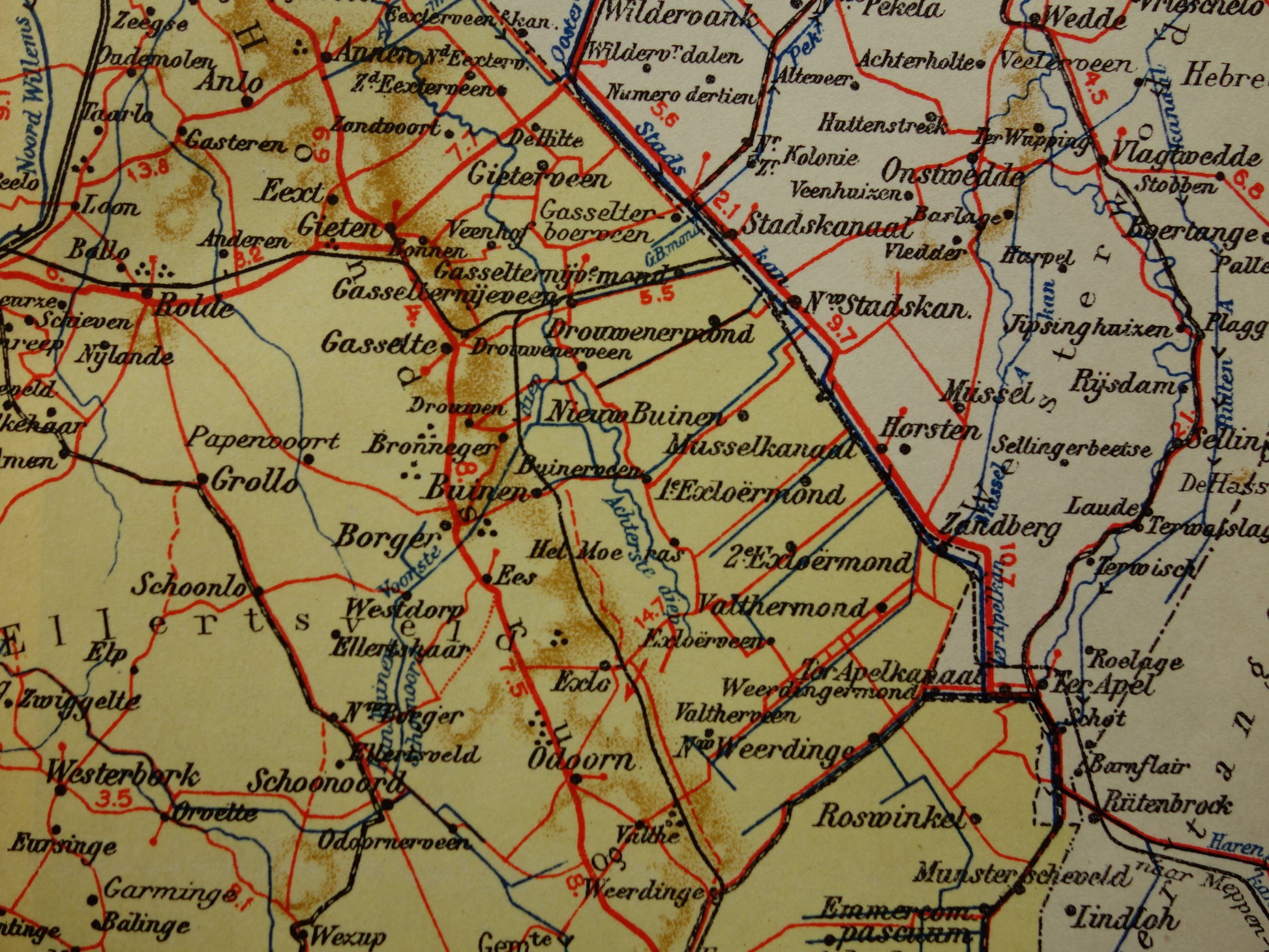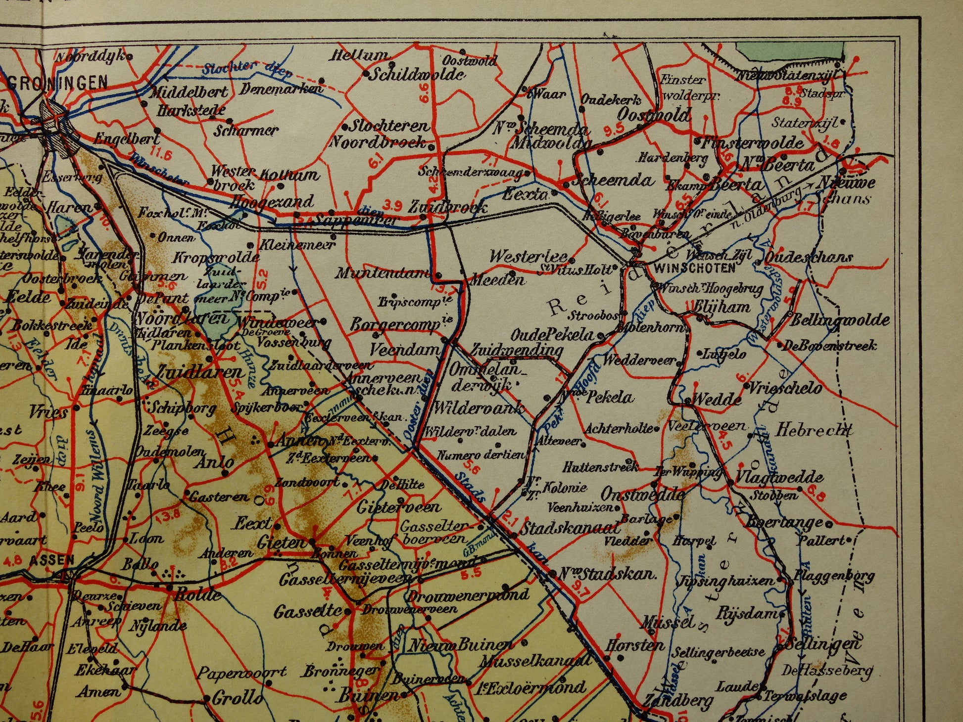Drenthe Oude kaart van de provincie Drenthe uit 1927 originele vintage historische landkaart