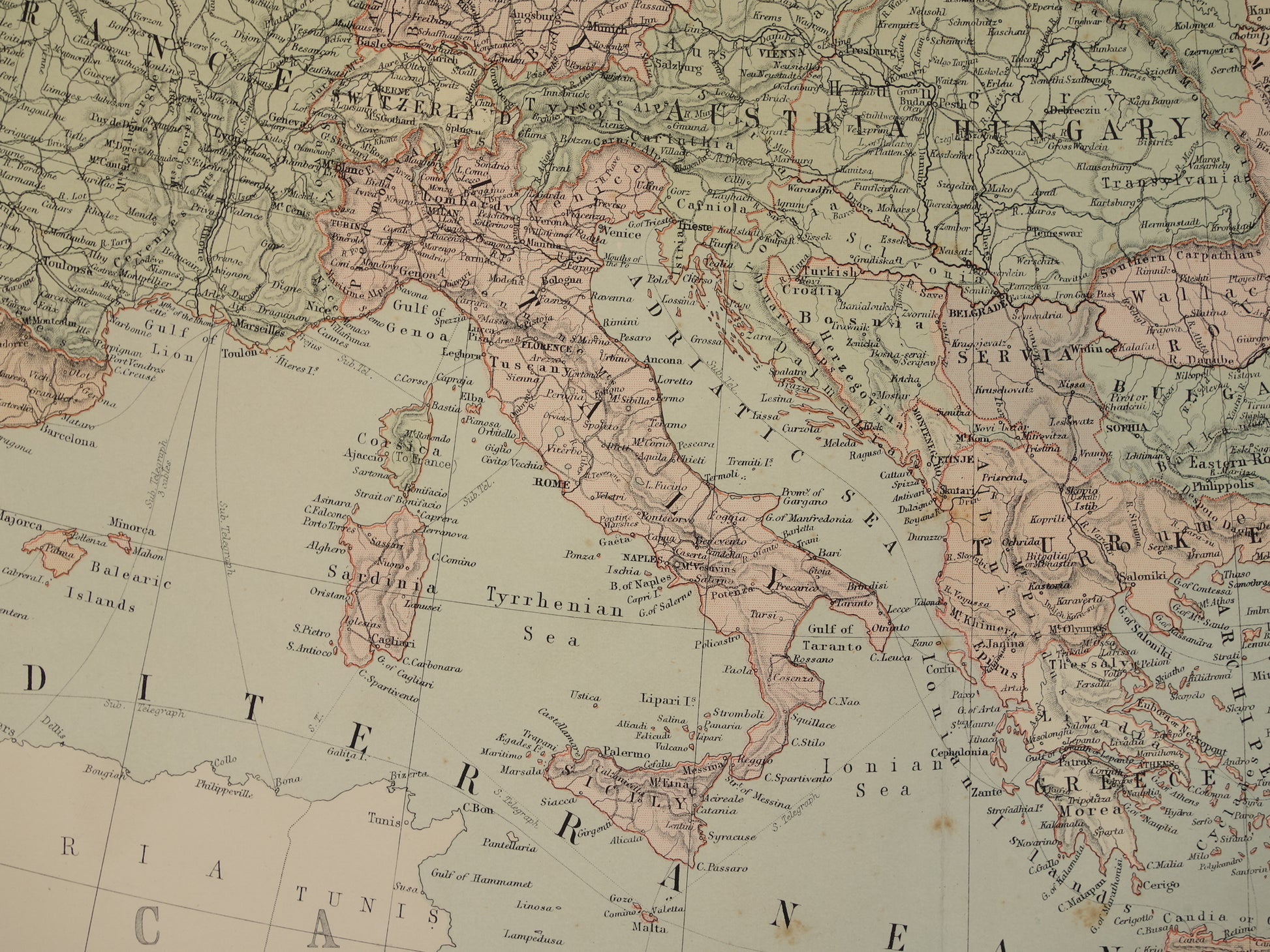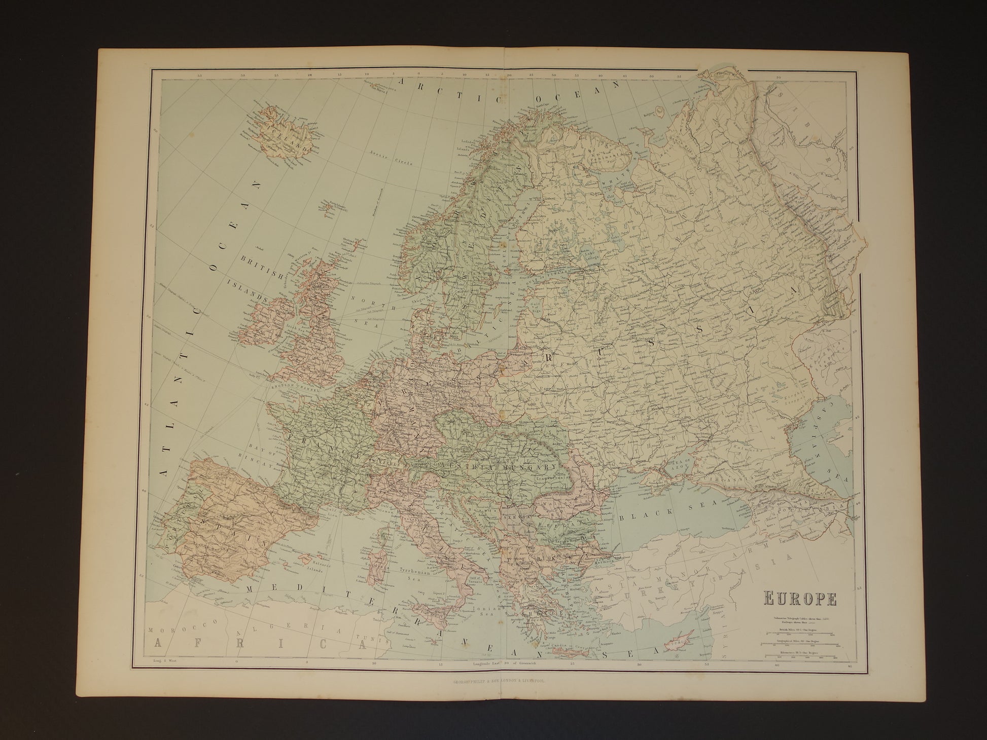 EUROPA Grote oude landkaart van Europa uit 1890 originele antieke Engelse kaart continent