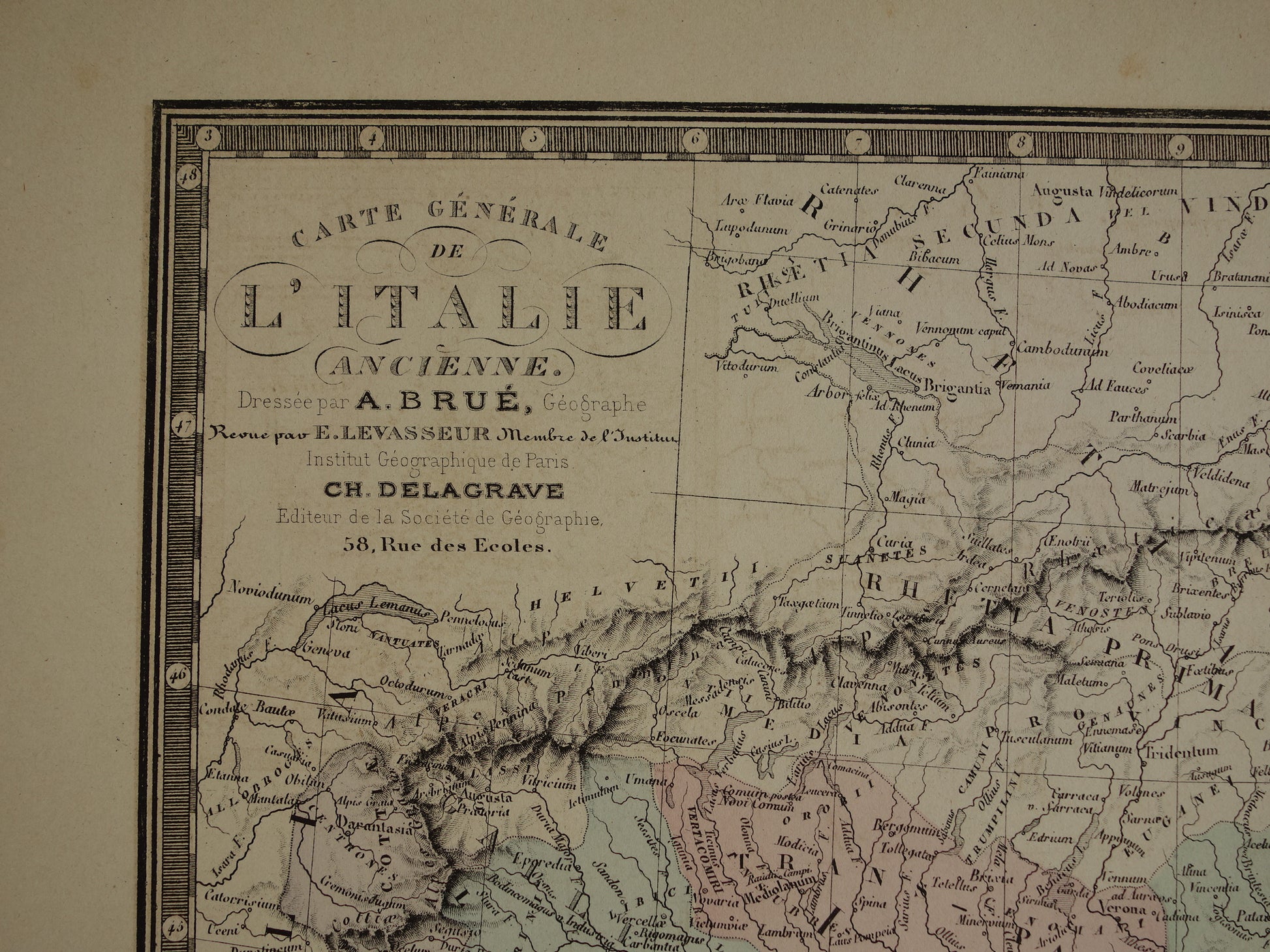ITALIE grote oude Franse kaart van Italië in de klassieke oudheid uit 1875 originele antieke handgekleurde landkaart