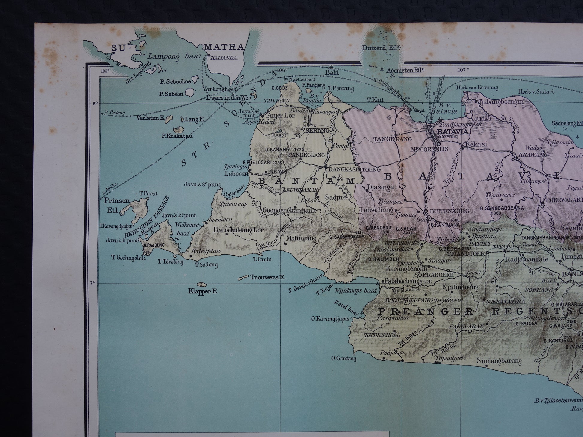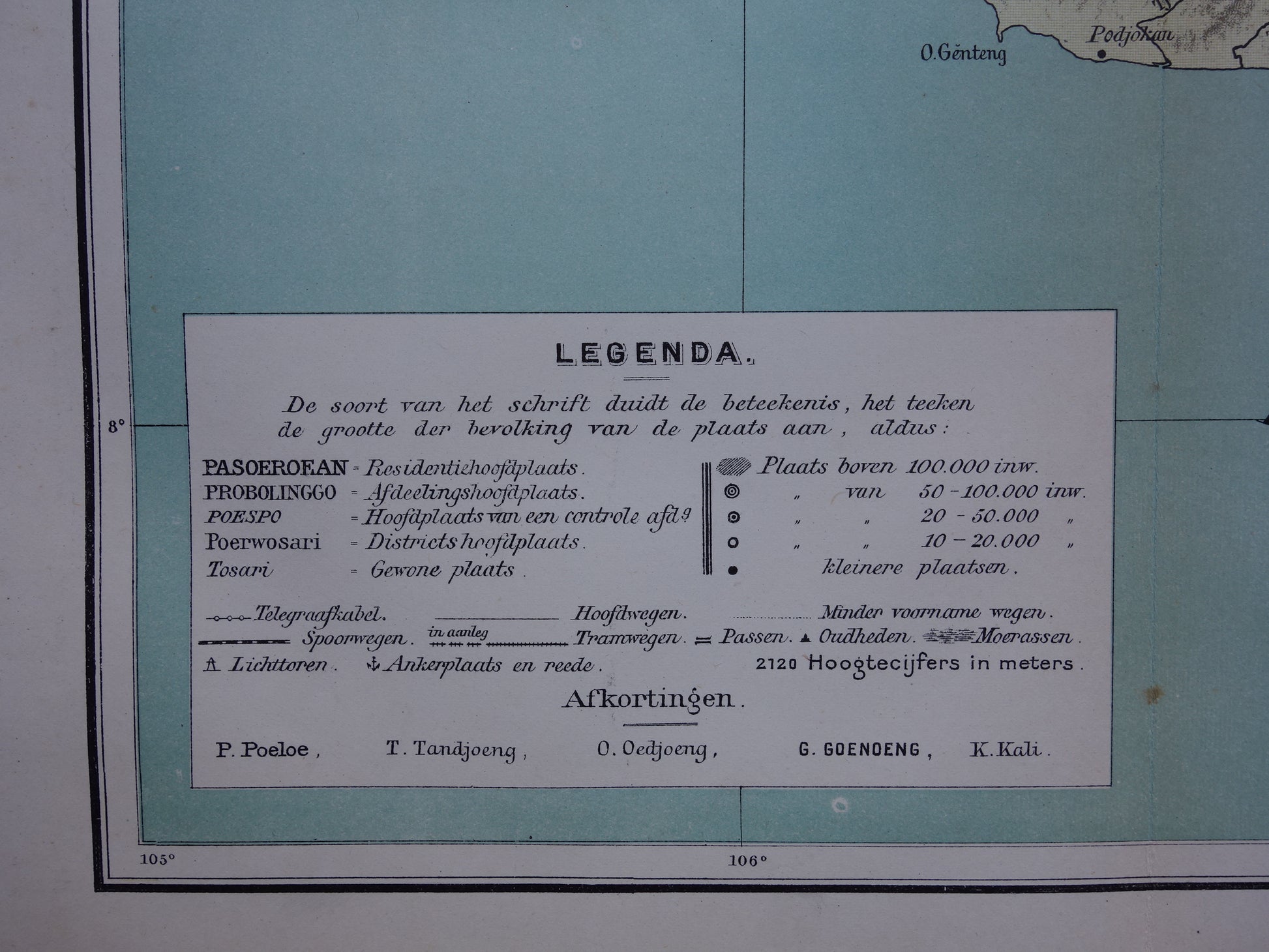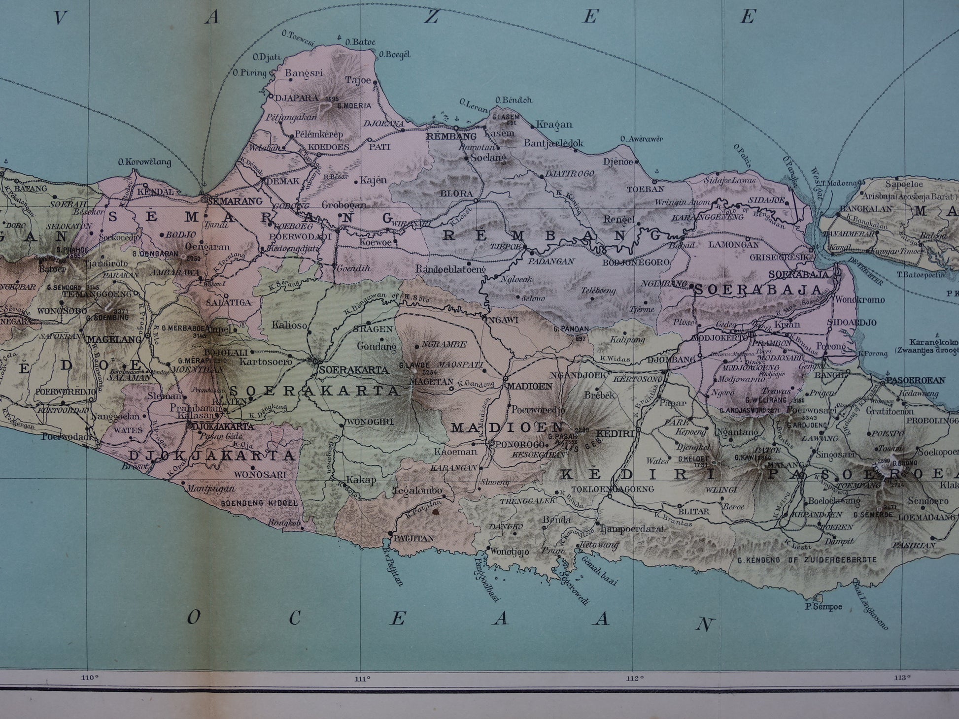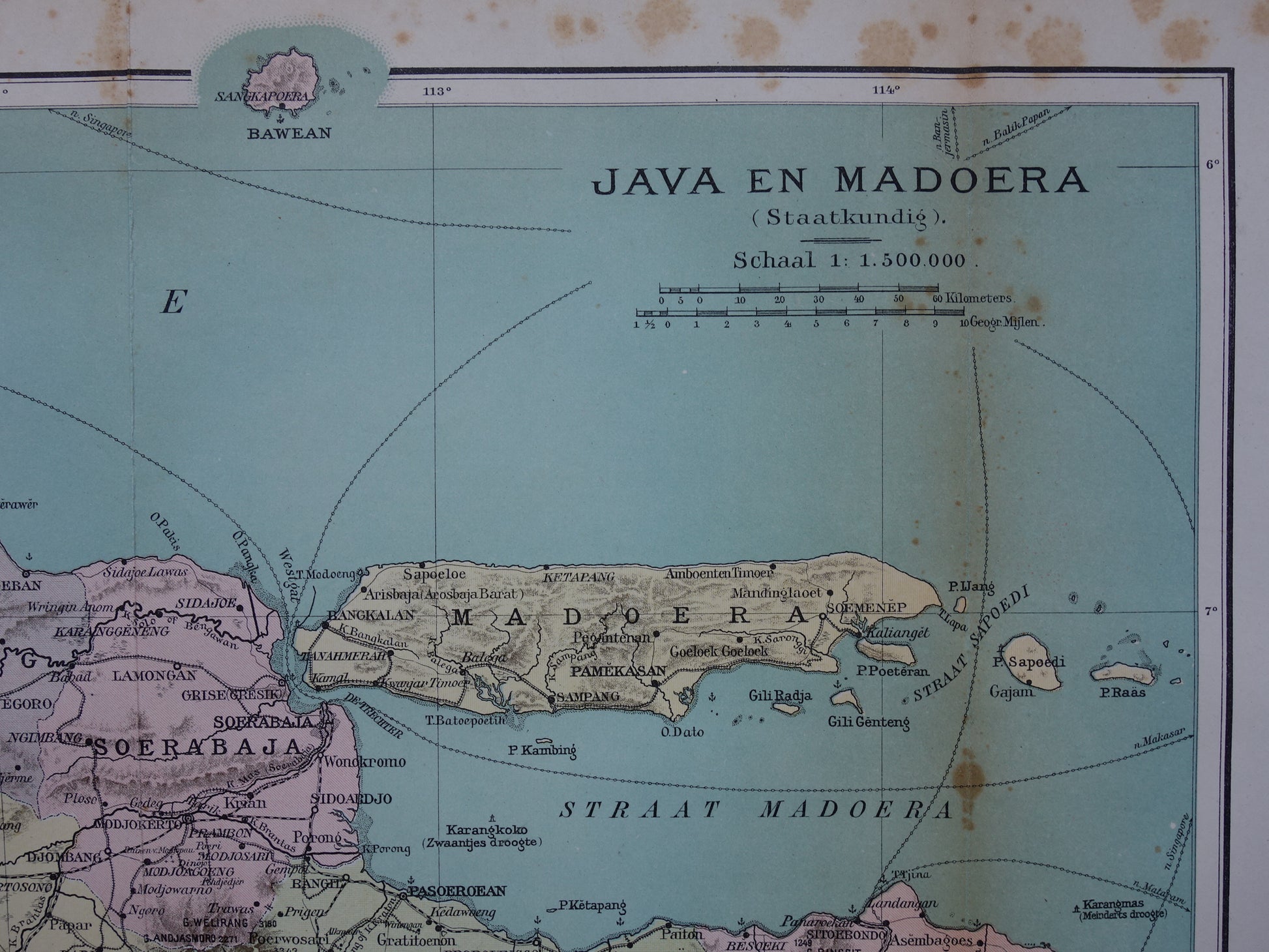 JAVA Grote oude kaart van Java en Madura Indonesië 1918 originele antieke Nederlandse landkaart