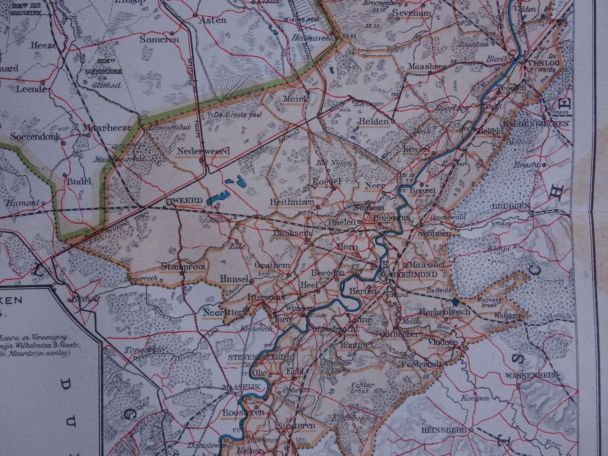 LIMBURG Oude landkaart van de provincie Limburg uit 1919 originele antieke kaart Maastricht Heerlen Roermond historische kaarten