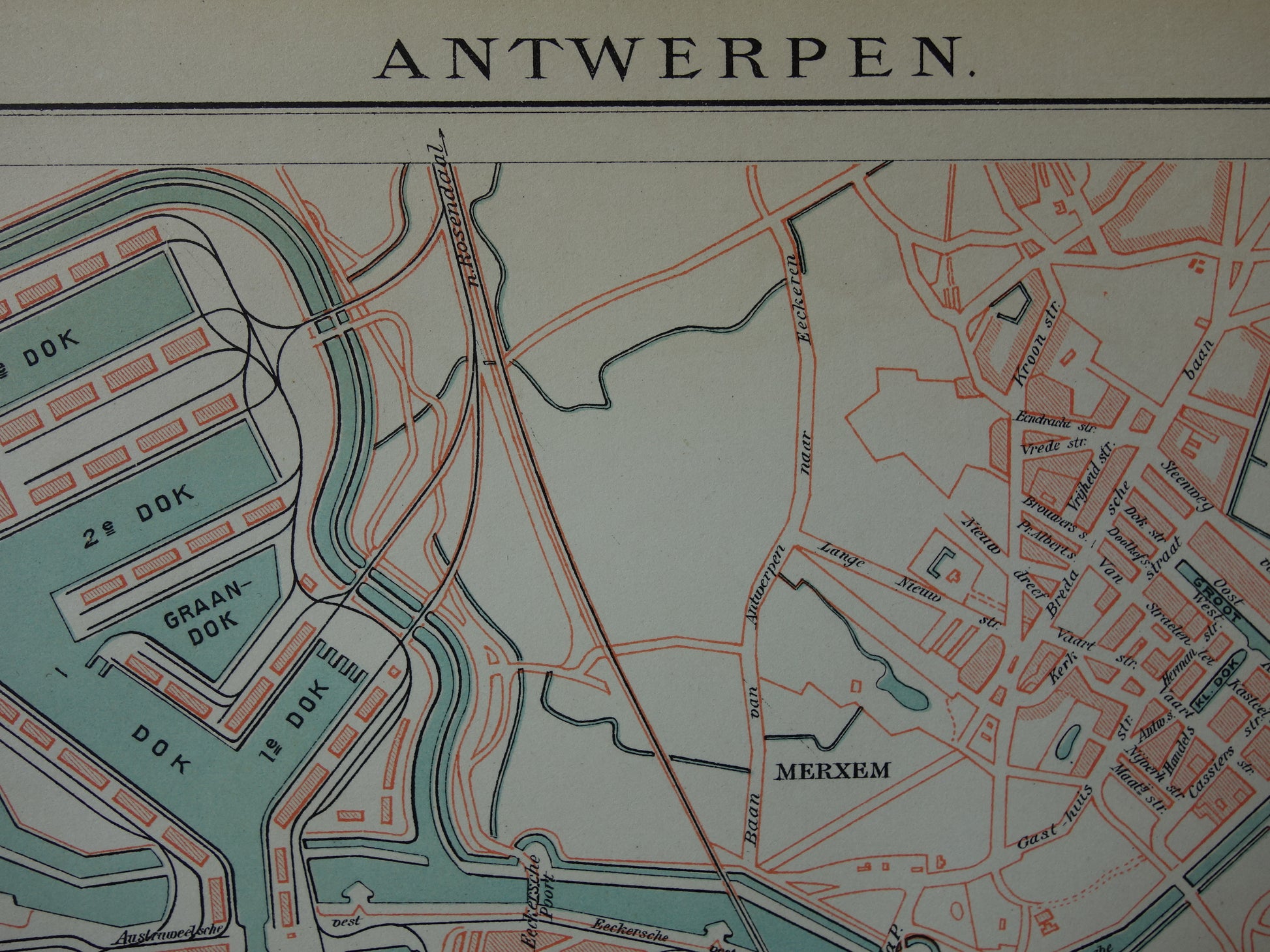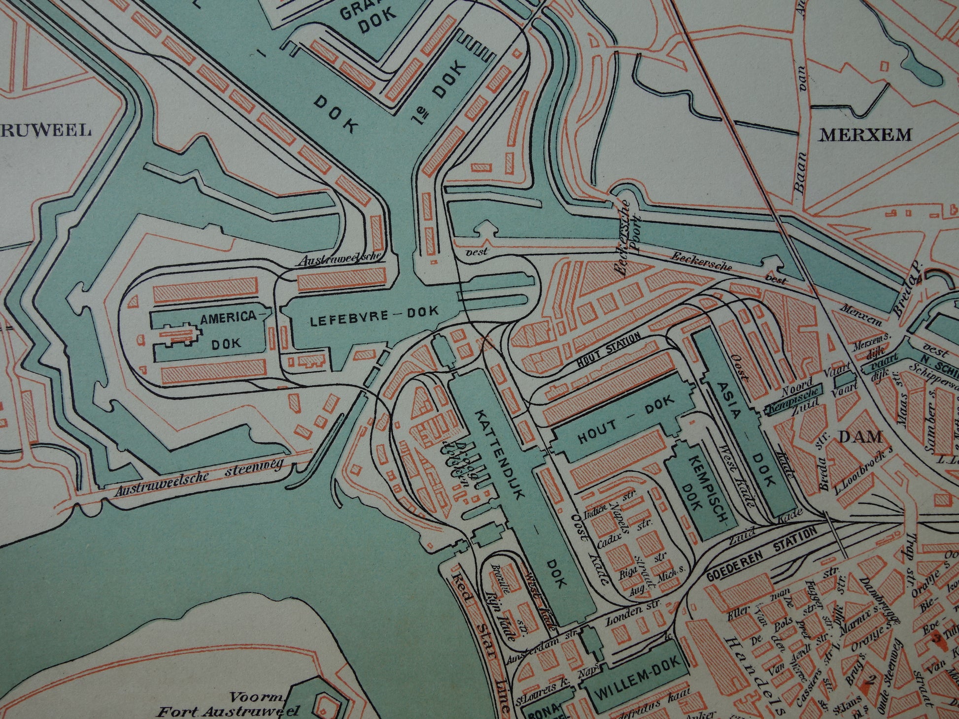 Oude kaart van Antwerpen uit 1914 originele vintage plattegrond Nederlandse landkaart
