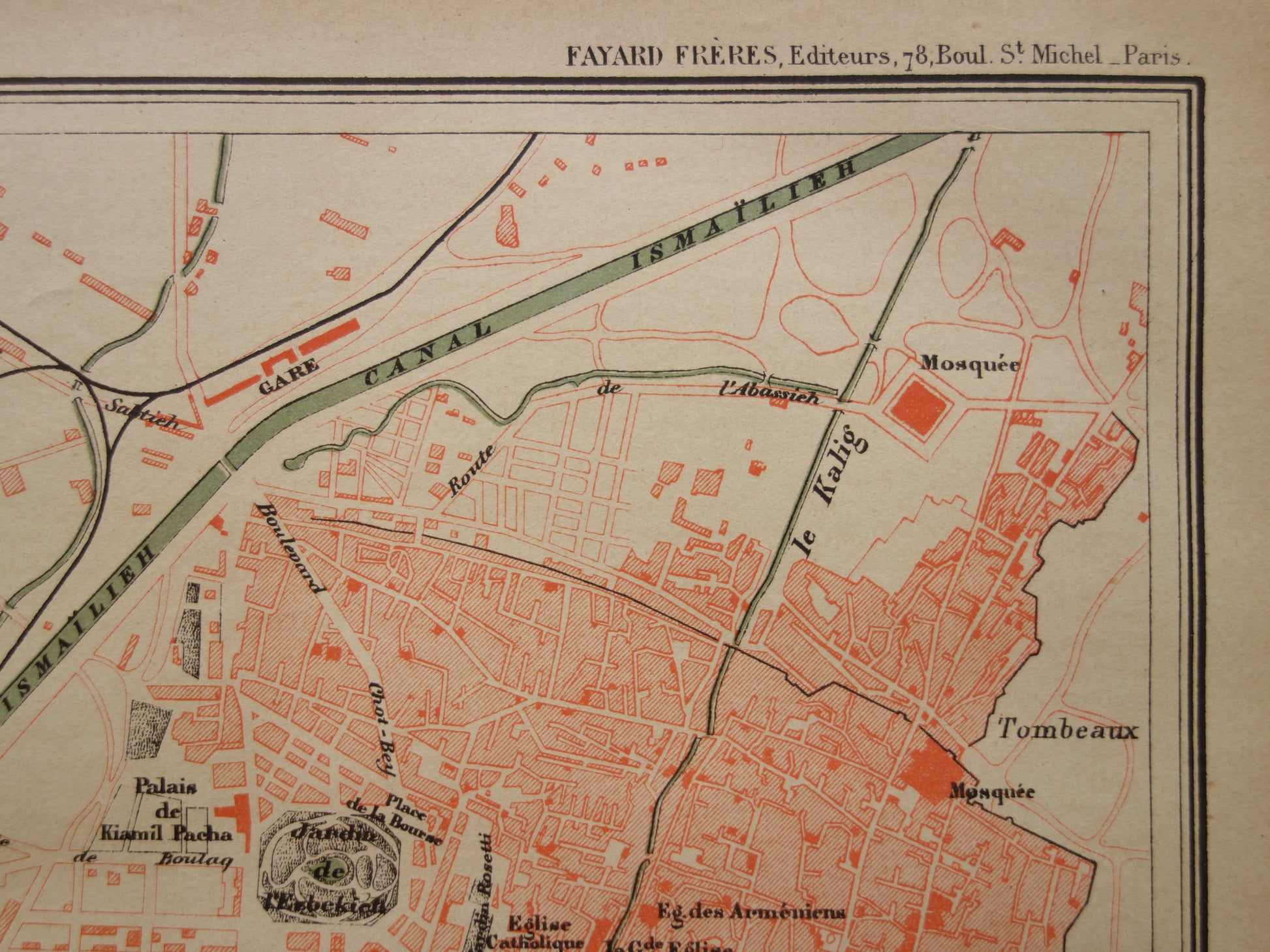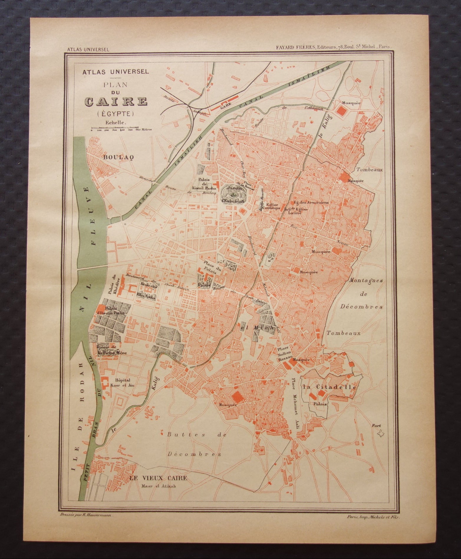 Te koop is een mooie, antieke Franse kaart van Caïro (Egypte) uit het jaar 1877. Zoom de foto's om de details van de kaart goed te zien.
