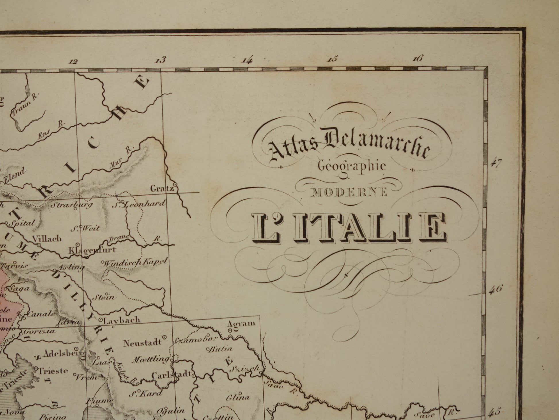 Oude kaart van Italië uit 1859 Originele antieke Franse landkaart van Italië