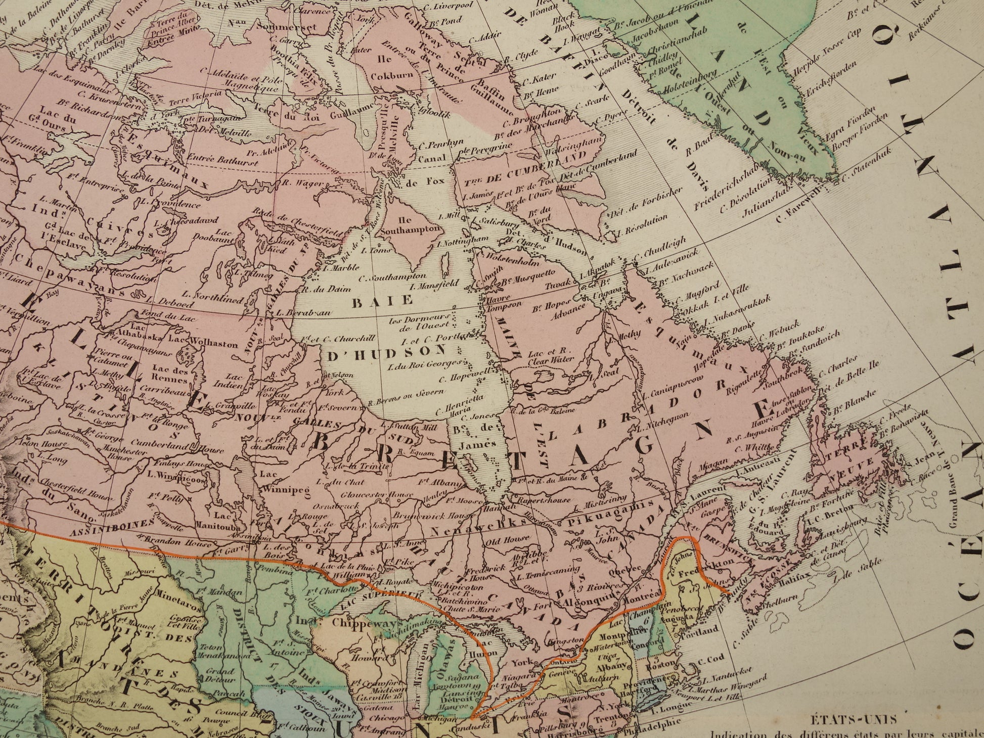 Oude kaart van Noord-Amerika uit 1859 Originele antieke Franse landkaart