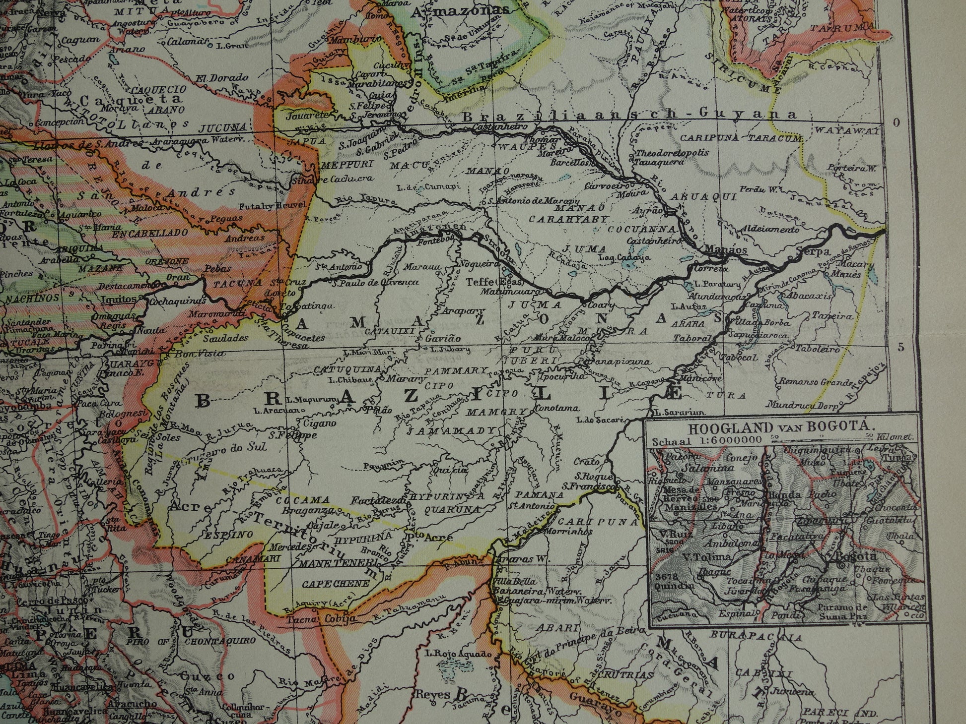 Oude kaart Venezuela Colombia Ecuador Peru en Bolivia historische landkaart Galapagos vintage Nederlandse kaarten