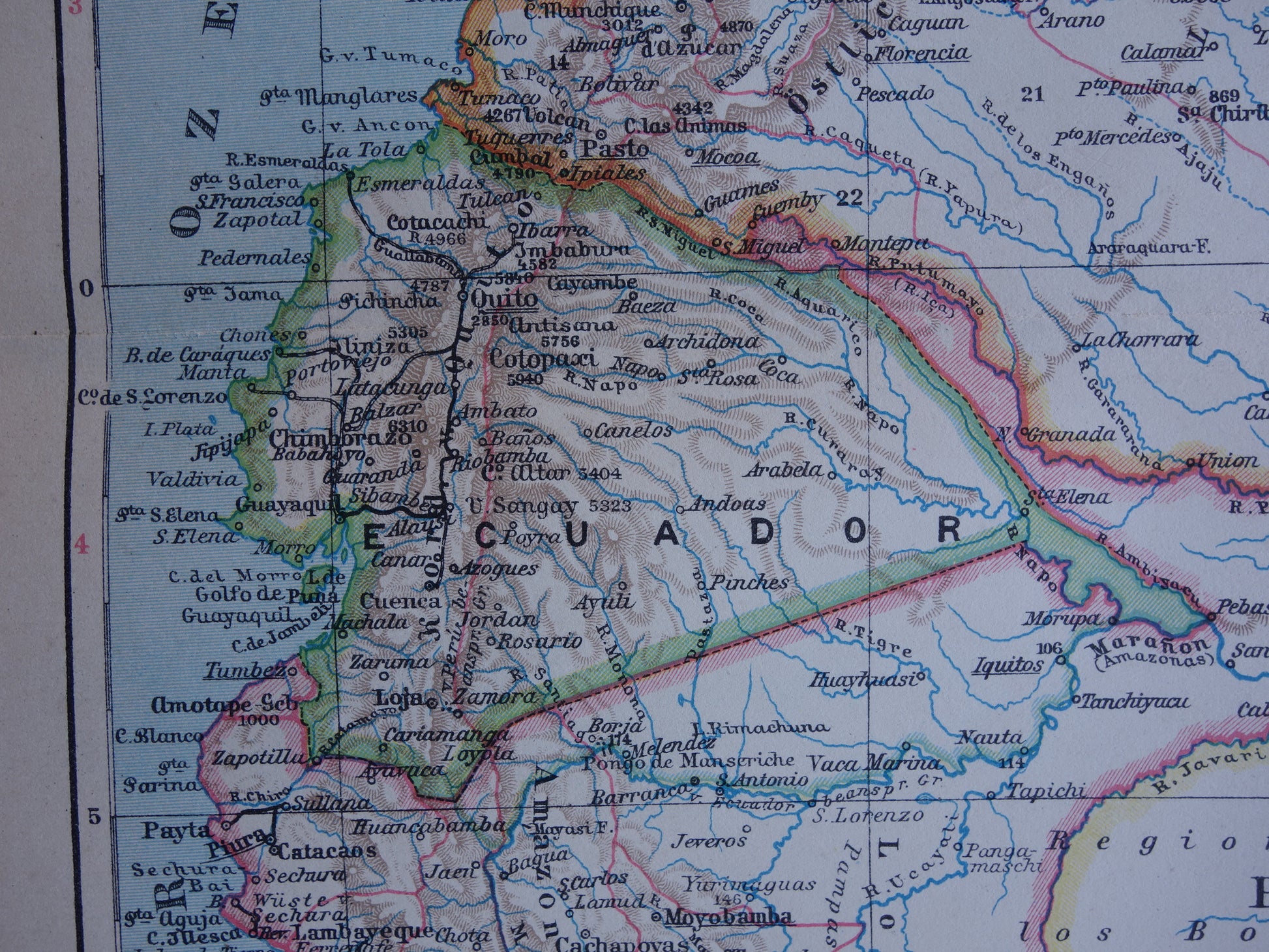 Oude kaart Venezuela Colombia Ecuador Peru historische landkaart oude vintage kaarten