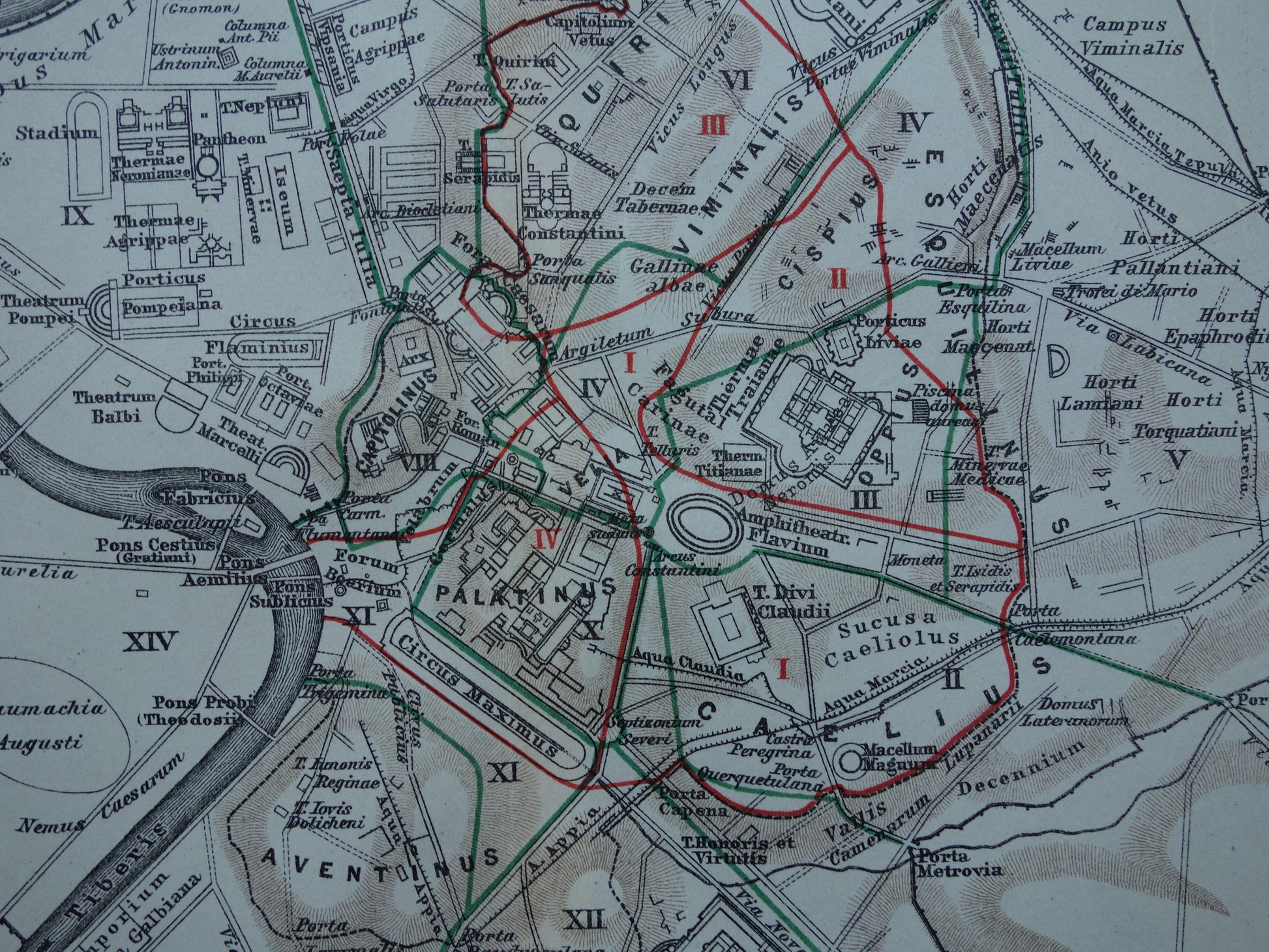 Oude plattegrond van Rome in de klassieke oudheid uit 1921 originele Nederlandse antieke kaart van Rome Forum Romanum