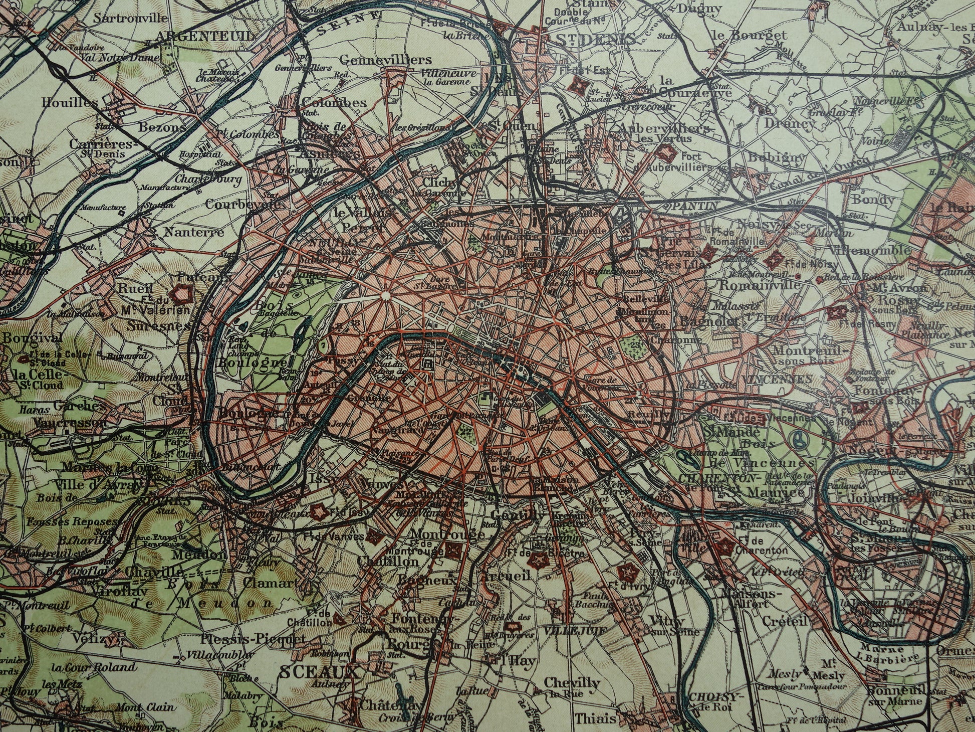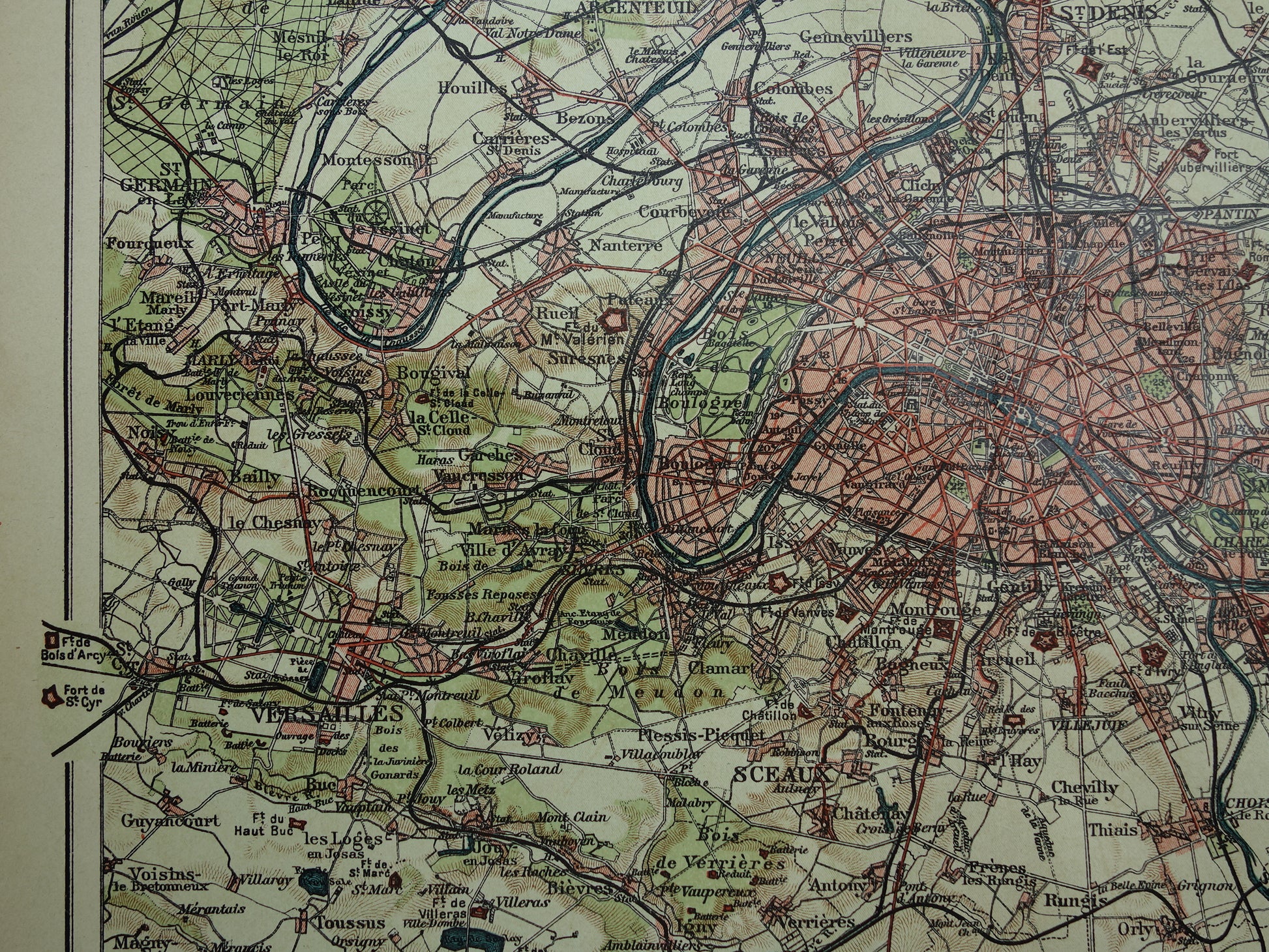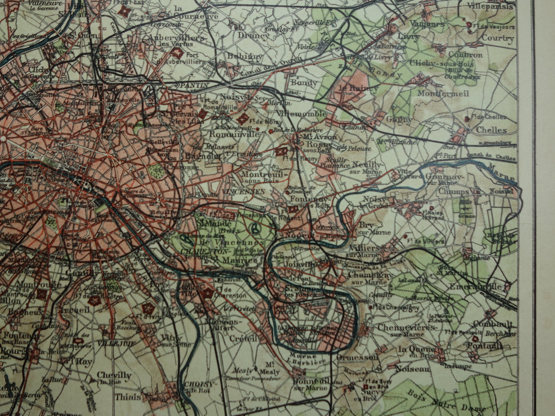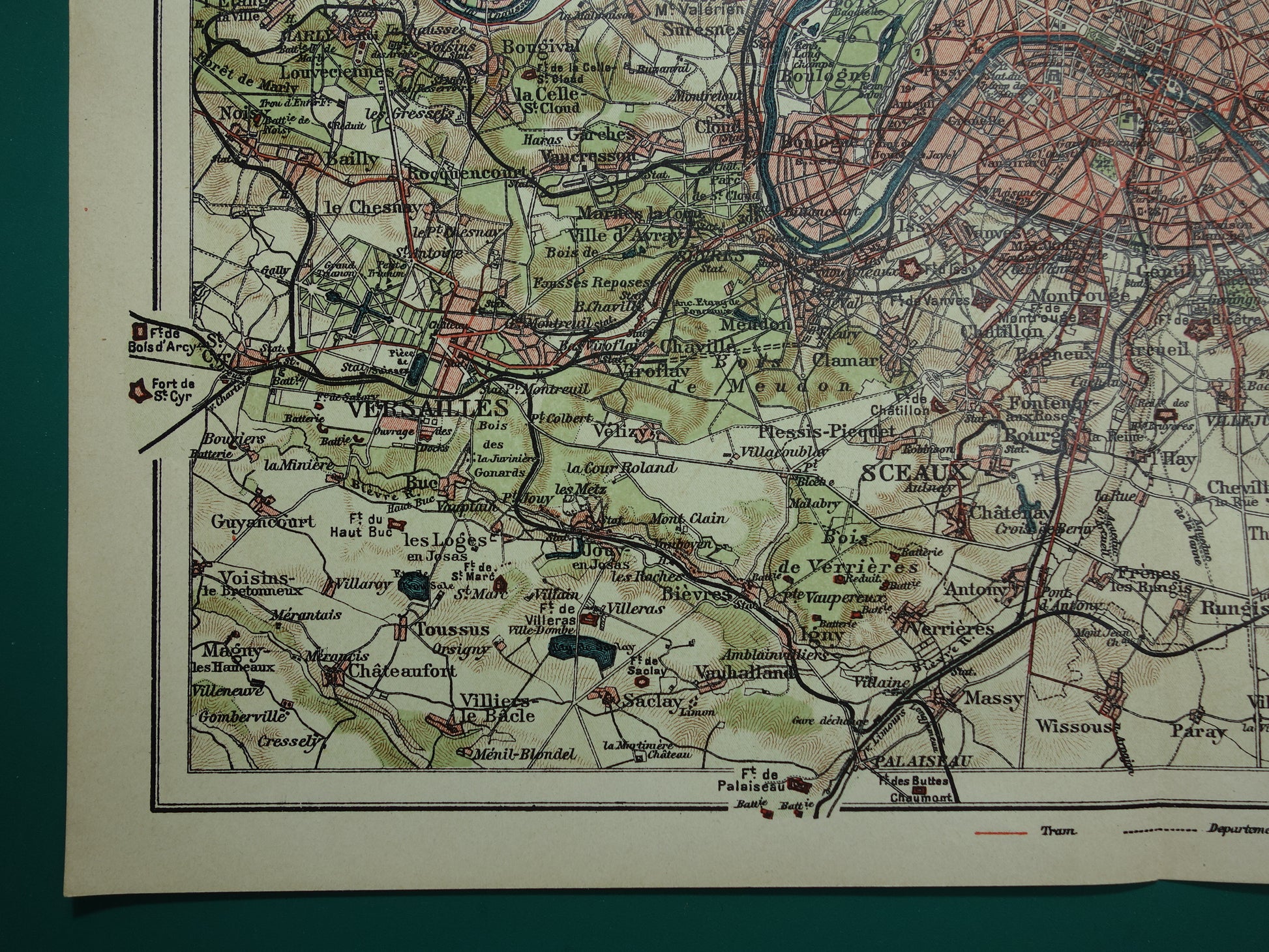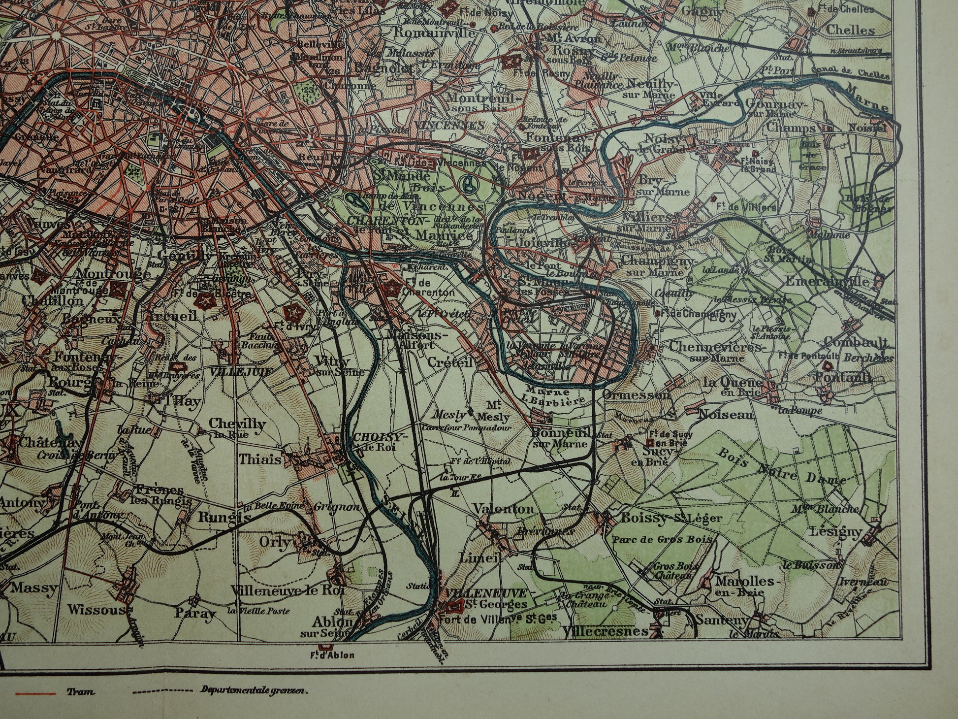 PARIJS oude kaart Originele antieke Nederlandse plattegrond van Parijs en omgeving uit 1910 vintage historische kaarten