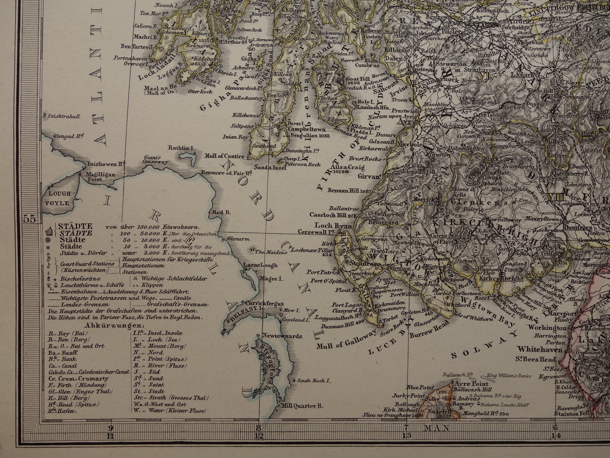 SCHOTLAND oude kaart van Schotland in 1878 originele antieke landkaart Edinburgh Glasgow vintage met jaartal