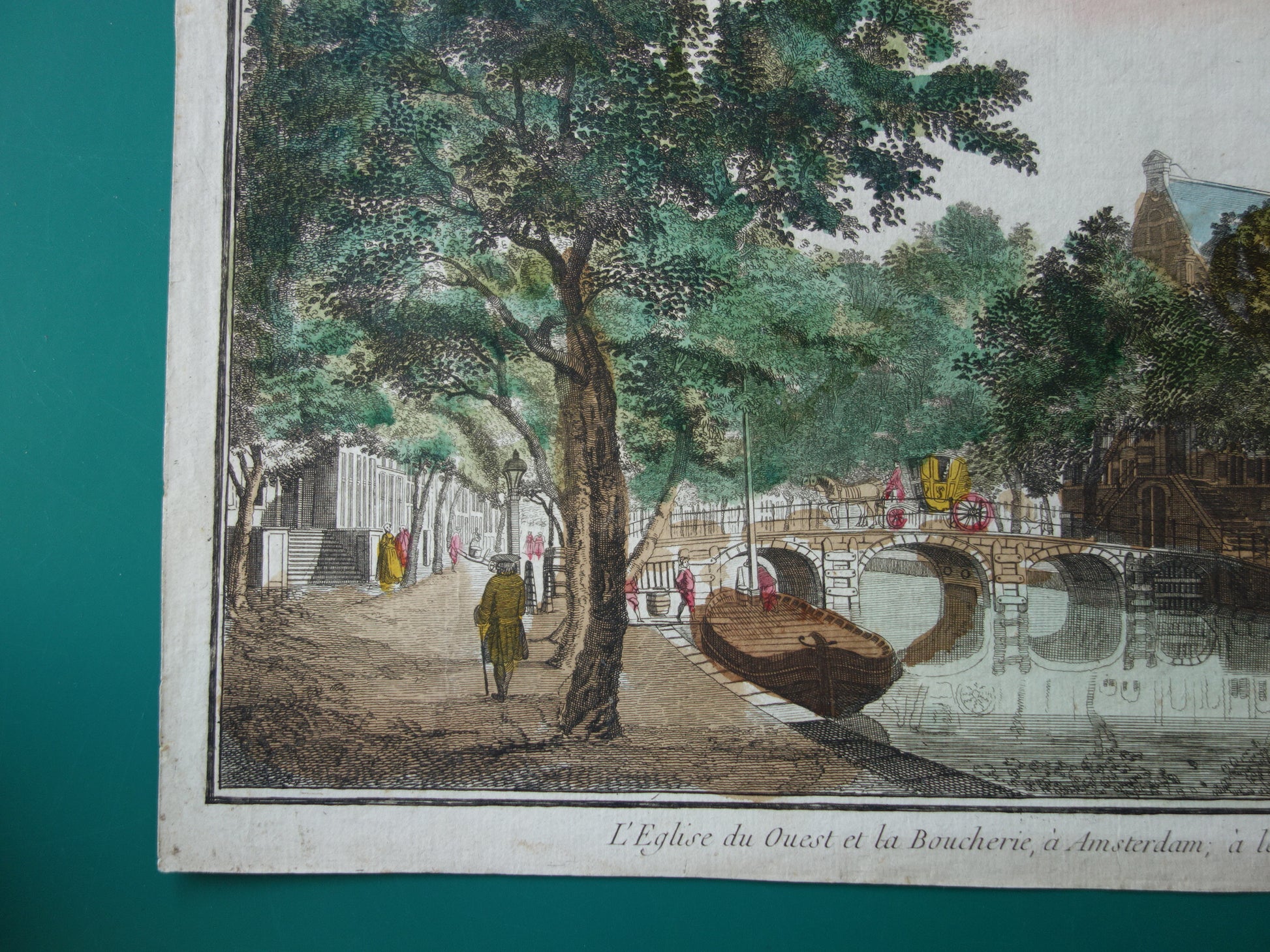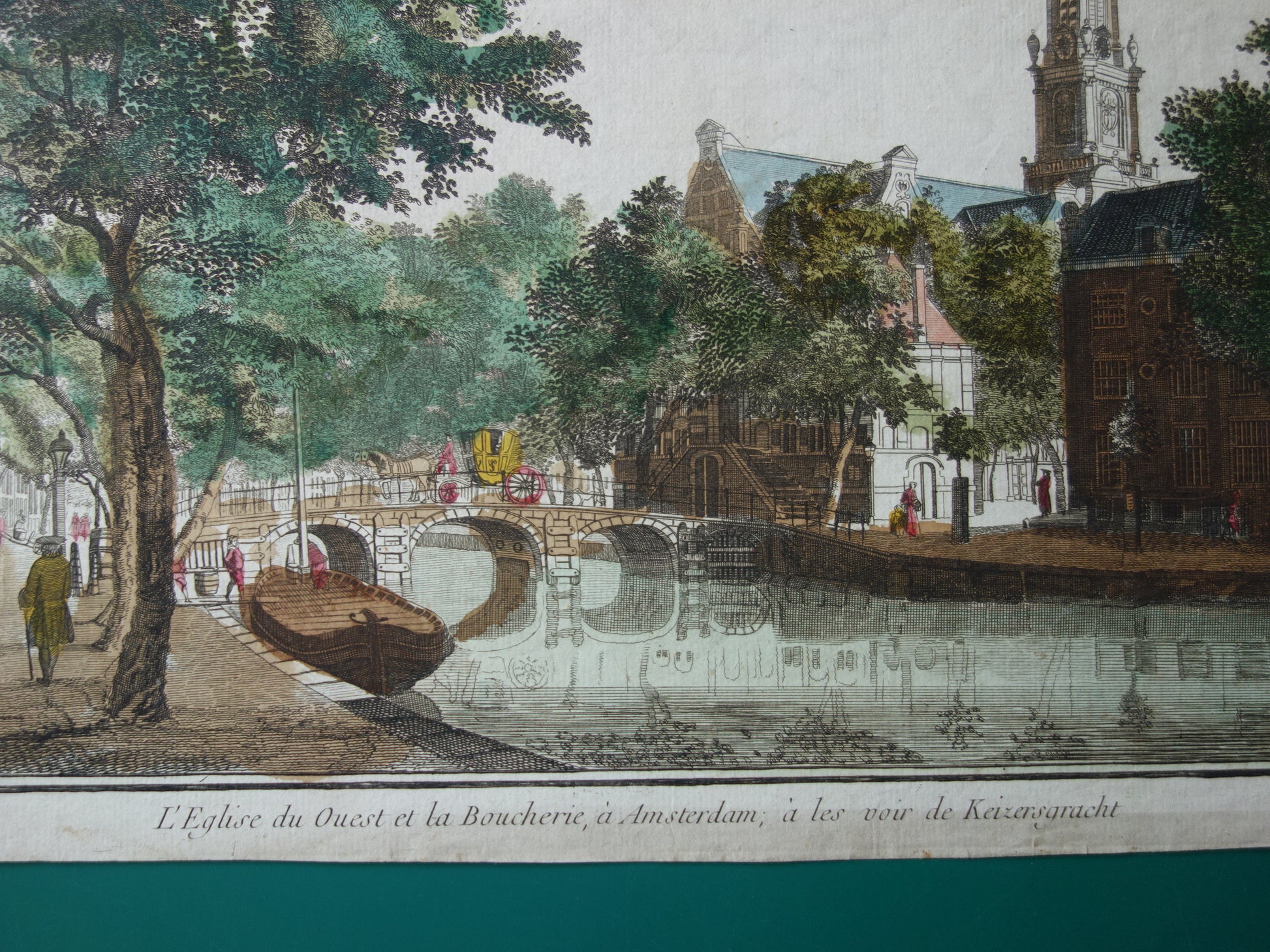 De prent is getiteld: "L'Eglise du Ouest et la Boucherie, a Amsterdam, a les voir de Keizersgracht" en komt uit 1770 (circa).