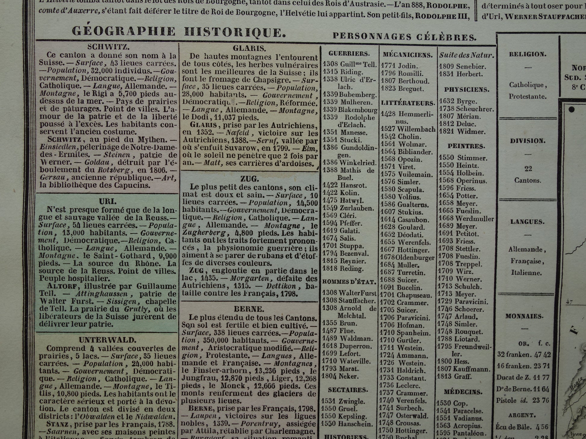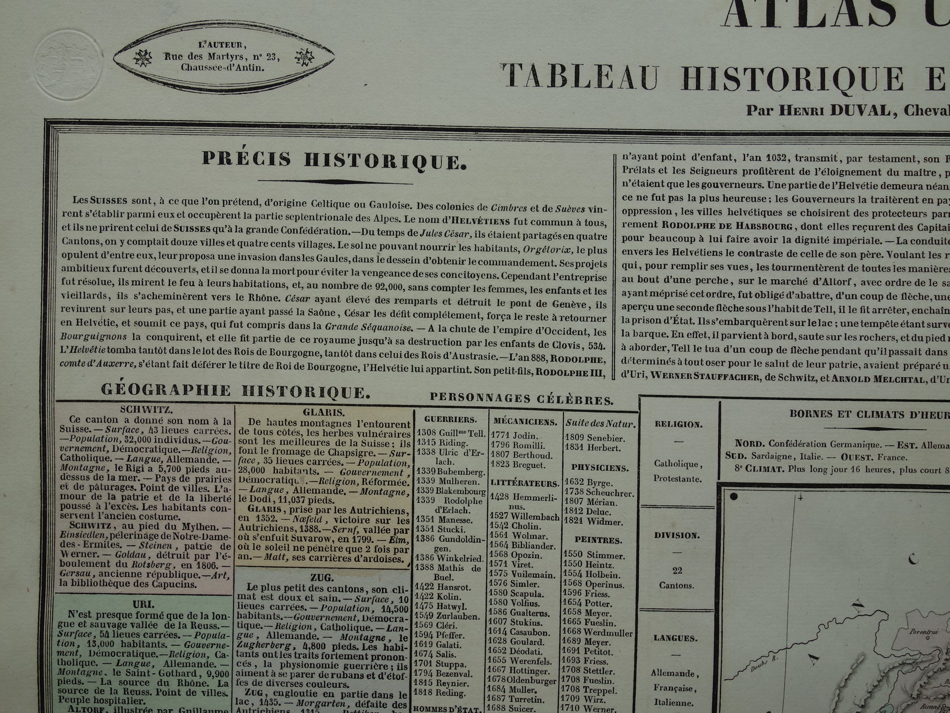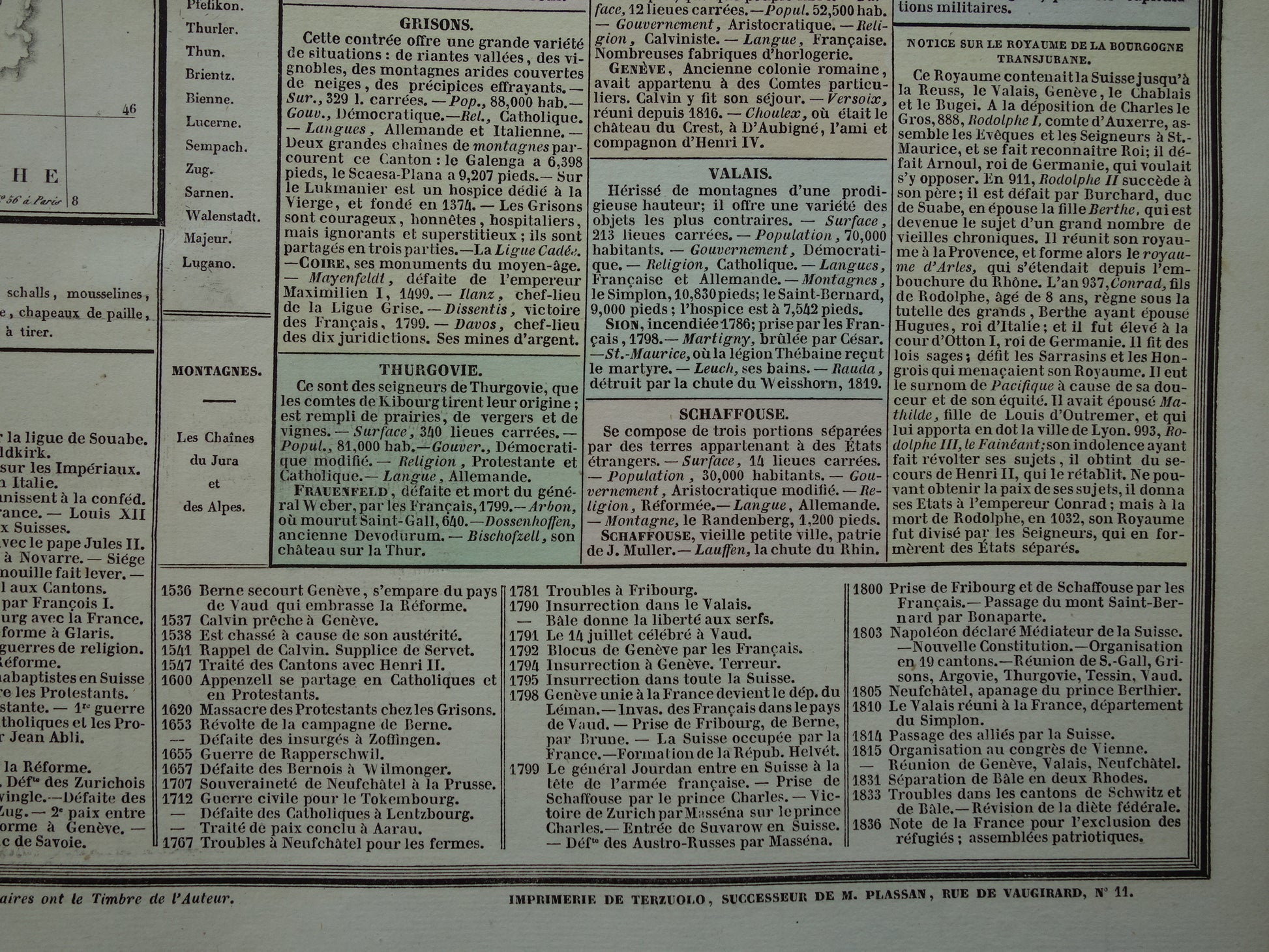 ZWITSERLAND Oude kaart Zwitserland uit 1837 grote originele antieke gravure over geschiedenis van Zwitserland met vintage landkaart
